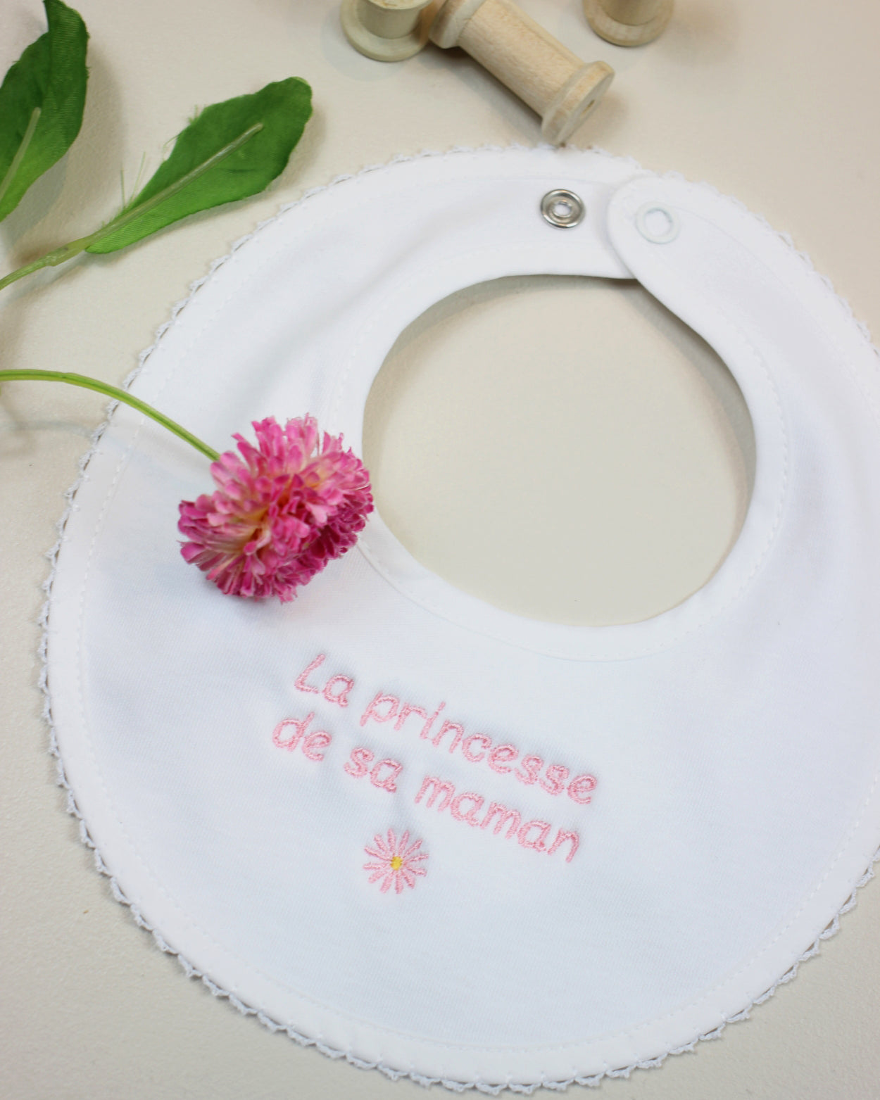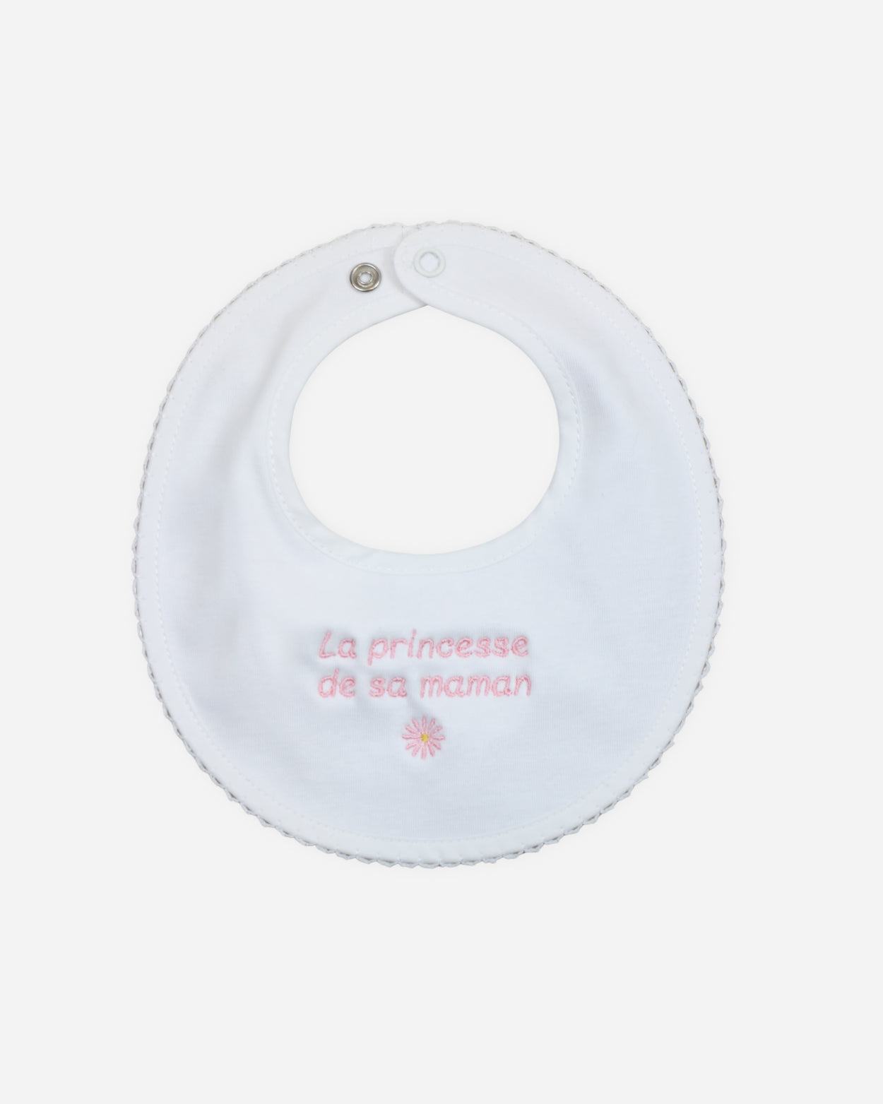 Bavoir naissance en coton blanc brodé La princesse de sa maman