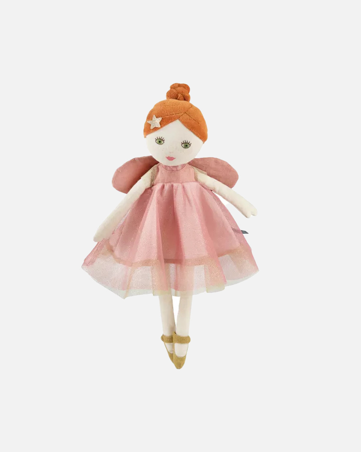 Célestine est une tendre petite fée habillée d’une robe rose poudré scintillante, rappelant les premières lueurs du matin. Avec ses ailes irisées, sa chevelure rousse relevée en chignon et sa petite étoile dans les cheveux, elle incarne la grâce et la douceur. Toujours souriante, Célestine aime veiller sur les enfants et illuminer leurs rêves de magie et de tendresse.