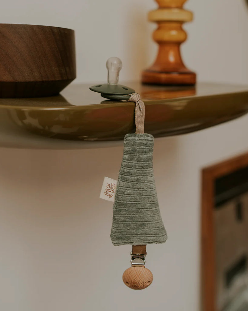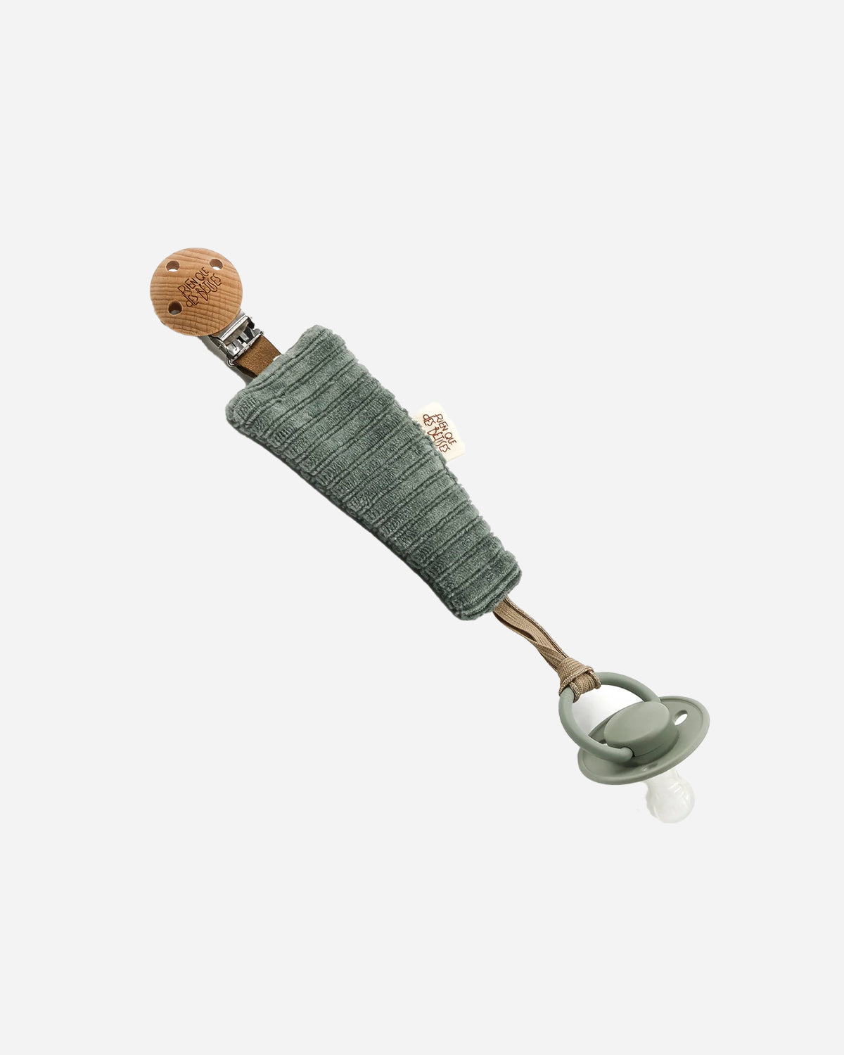 Apportez une touche de douceur et d’élégance au quotidien de votre bébé avec cette attache-tétine en velours côtelé kaki.