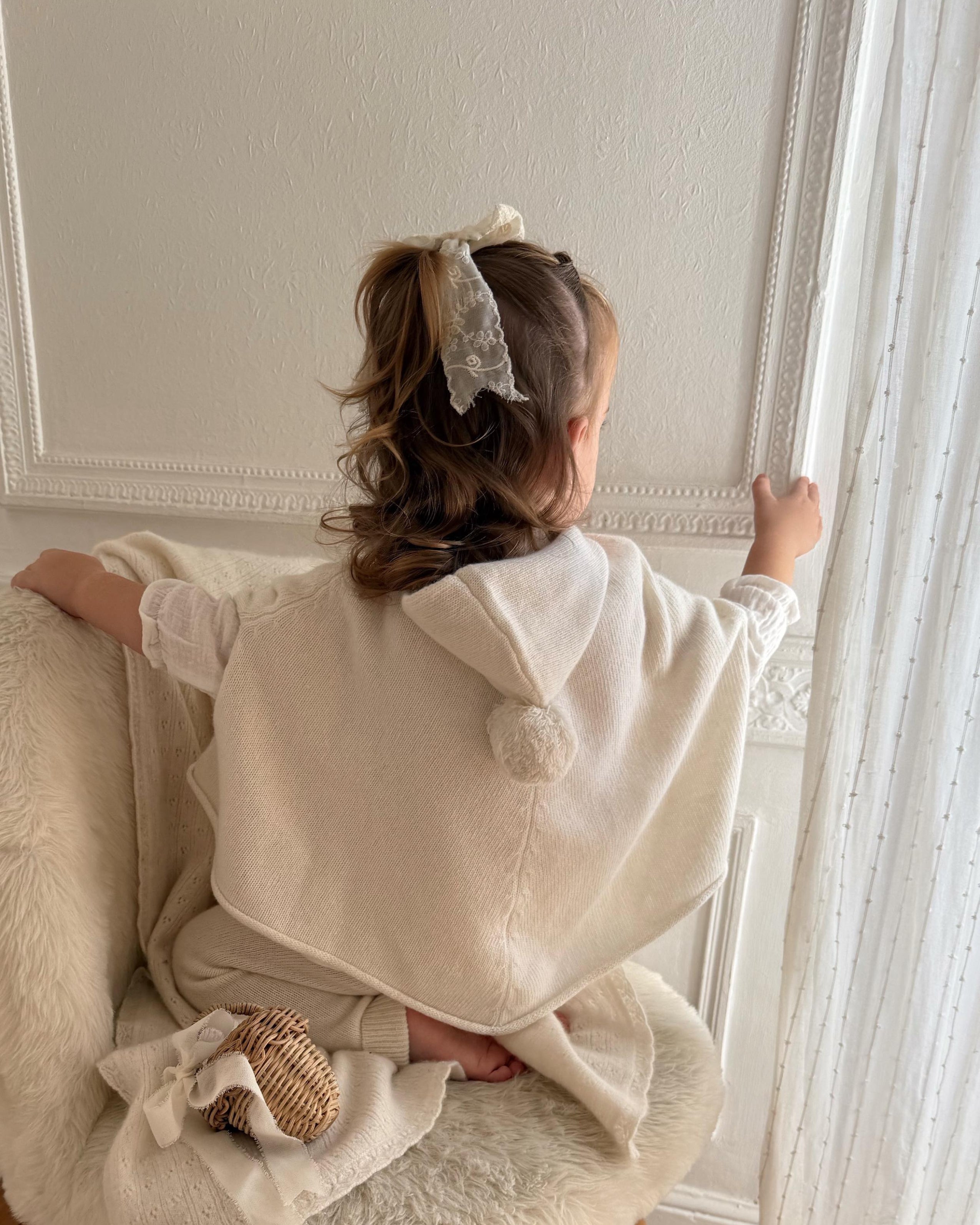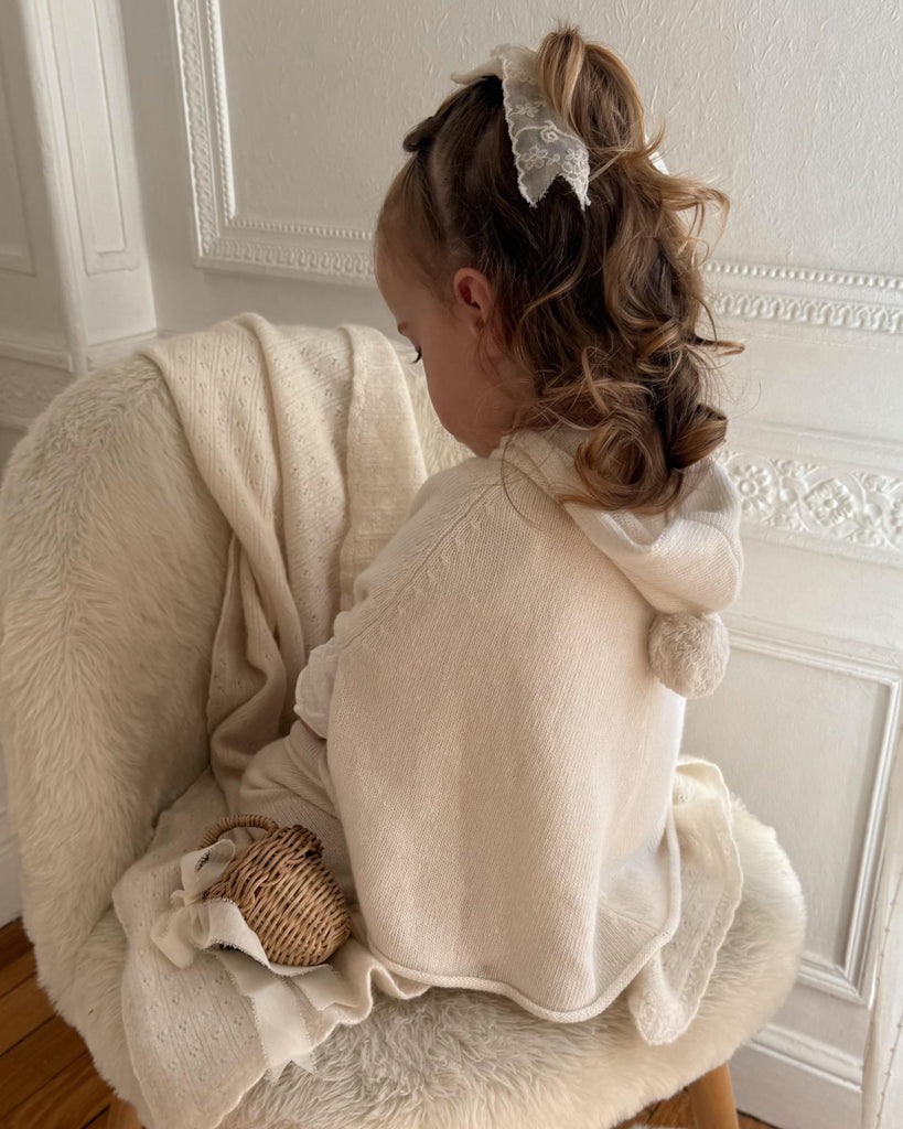 La laine et le cachemire, fibres nobles naturellement thermorégulatrices, assurent une chaleur optimale à votre bébé, même lors des journées les plus froides. Ce poncho moelleux le gardera bien au chaud, enveloppé de tendresse et de douceur.