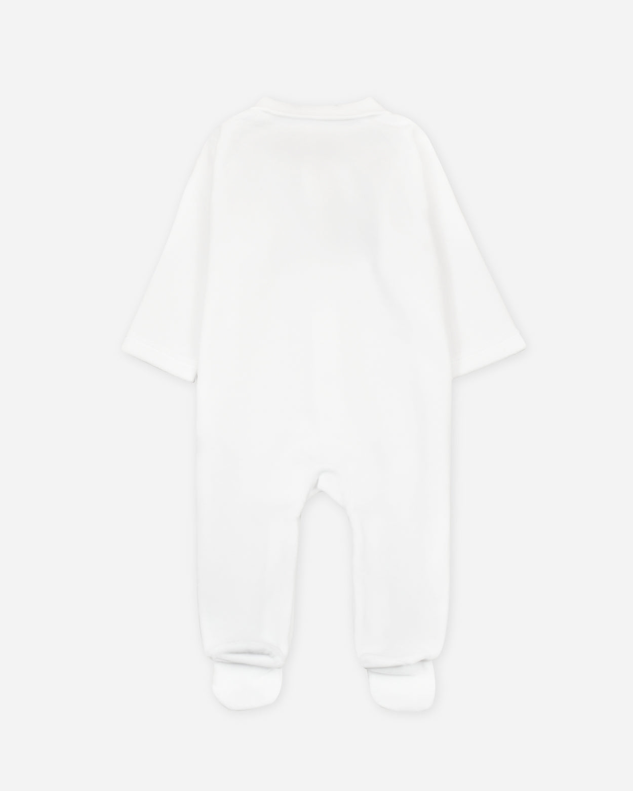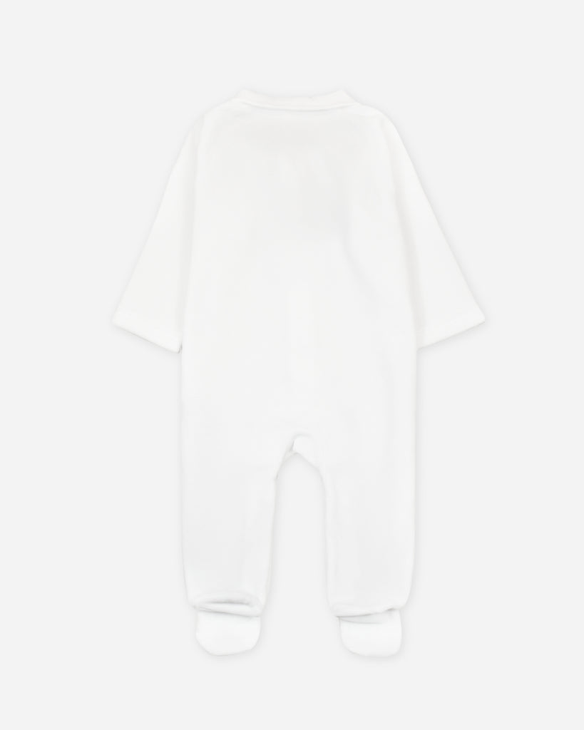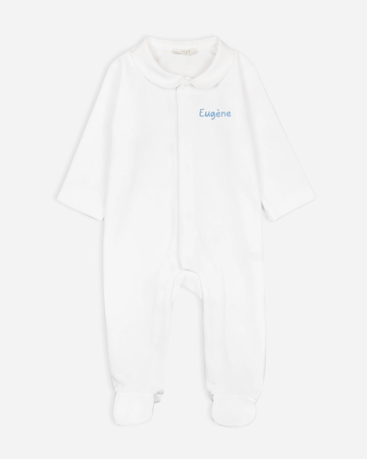 Offrez un cadeau de naissance unique et plein de tendresse avec ce pyjama en velours blanc. Doux et confortable, il est parfait pour les premiers jours de bébé. Ce pyjama se distingue par ses broderies délicates et sa personnalisation avec le prénom de votre petit trésor, ajoutant ainsi une touche personnelle et inoubliable. Grâce à son ouverture pratique à l'avant, il facilite l'habillage tout en restant élégant. Un choix idéal pour allier confort, style et originalité, et faire de ce pyjama un souvenir précieux du début de la vie de bébé.