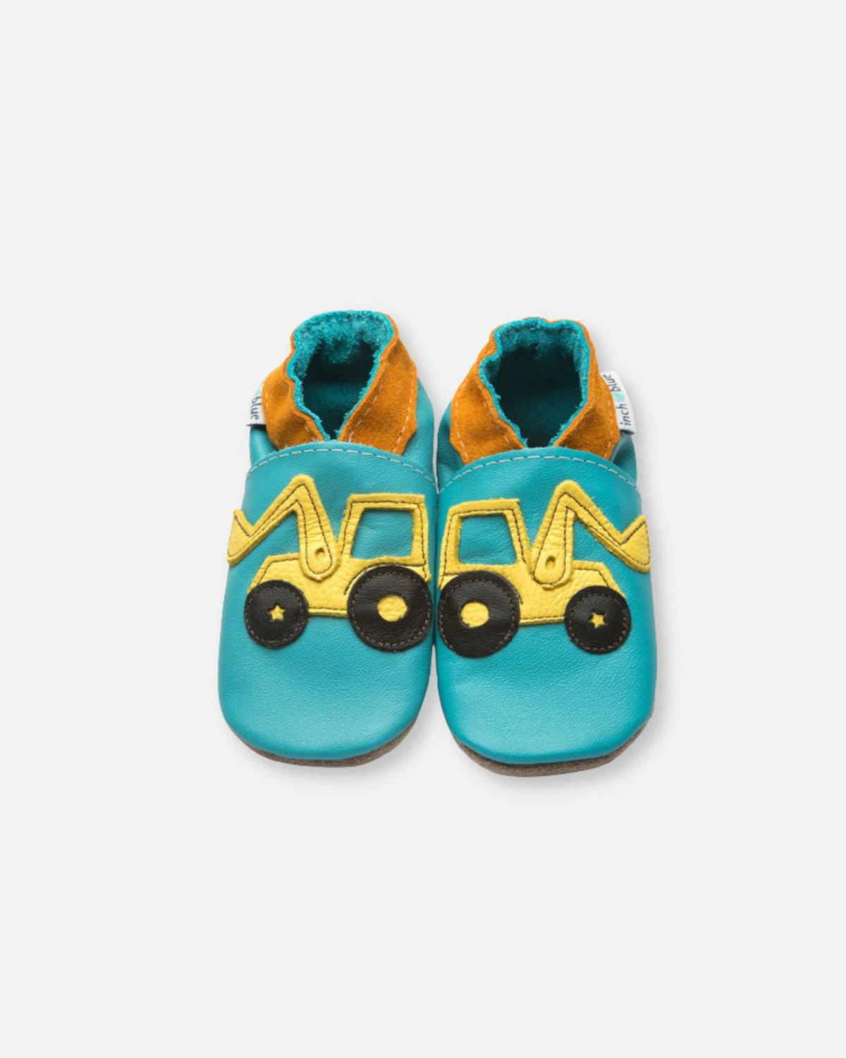 Découvrez les chaussons bébé en cuir turquoise, une touche de couleur vive pour les pieds de votre tout-petit. Fabriqués en cuir souple pour assurer un confort optimal, ces chaussons sont parfaits pour les aventures de votre bébé. Leur design est subtilement rehaussé par un motif tracteur jaune, ajoutant une touche ludique à leur look. Offrez à votre bébé le confort et le style avec ces chaussons vibrants et amusants.