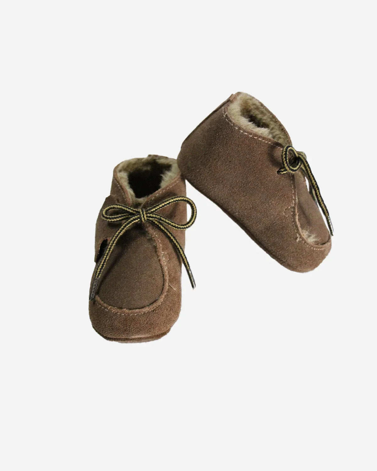 Dotées de lacets, ces petites bottines sont à la fois pratiques et stylées, garantissant un bon maintien tout en étant faciles à enfiler. Idéales pour les sorties en poussette, elles allient confort, protection et charme, tout en restant légères pour favoriser la liberté de mouvement. Un indispensable chic pour garder bébé bien au chaud avec style.