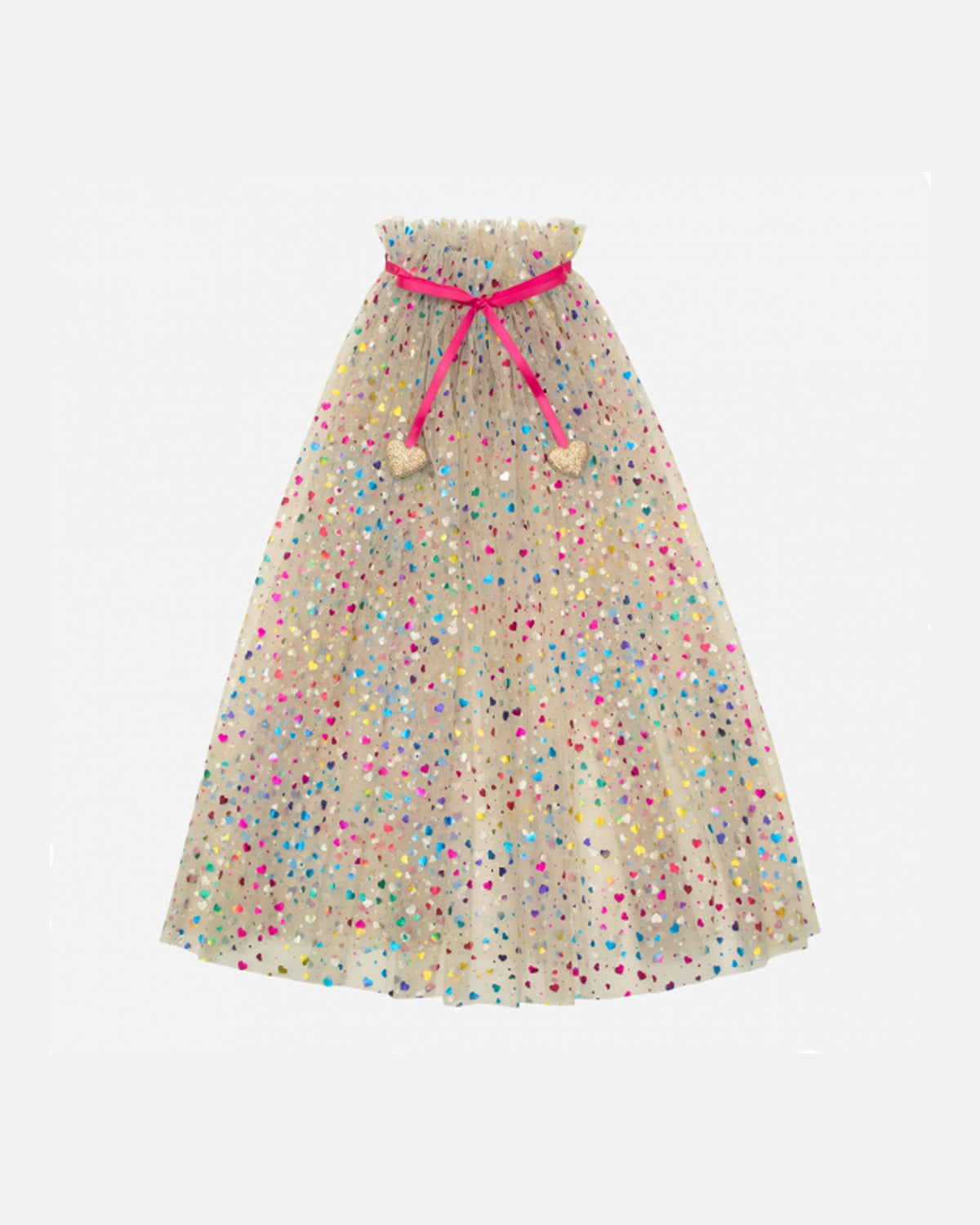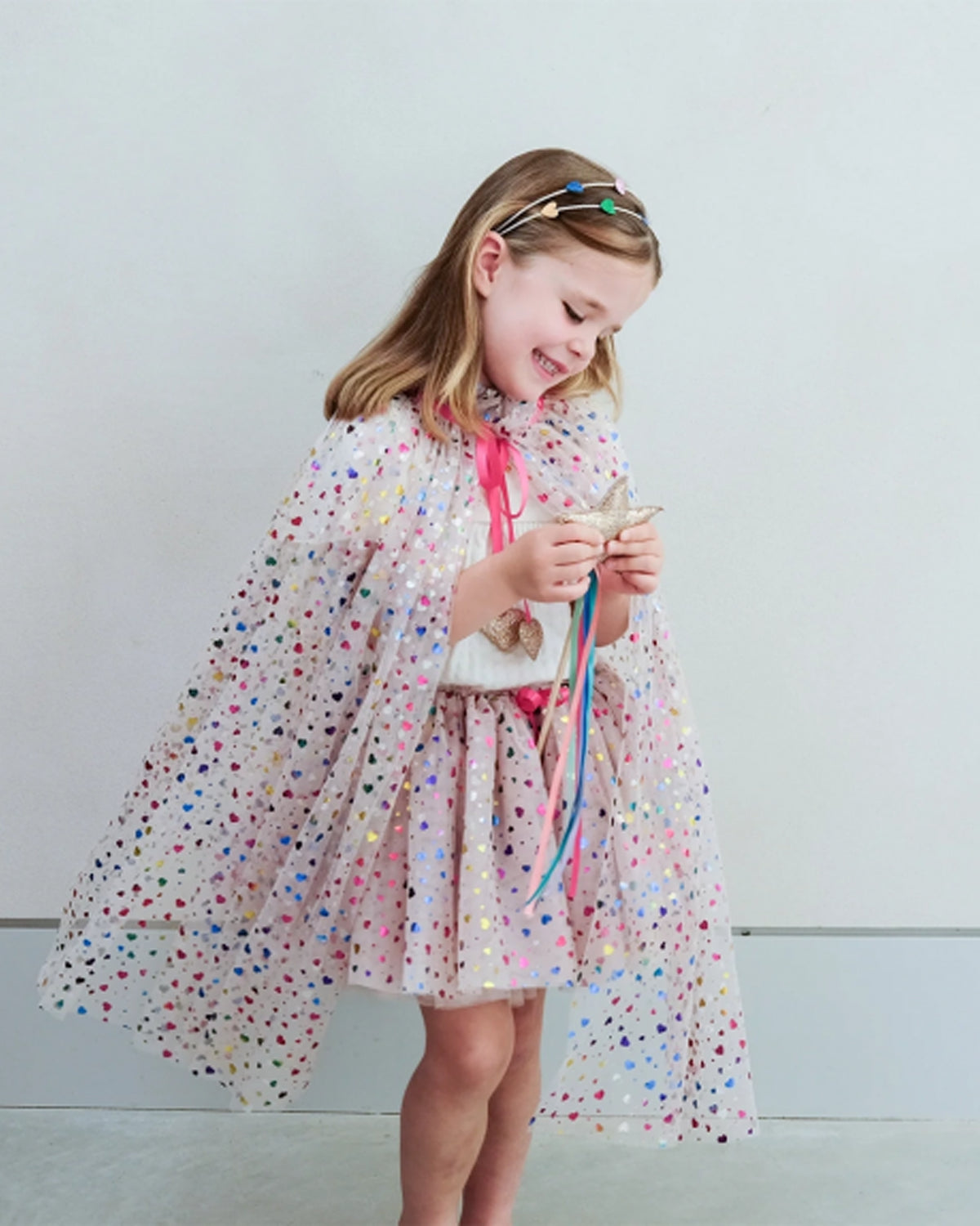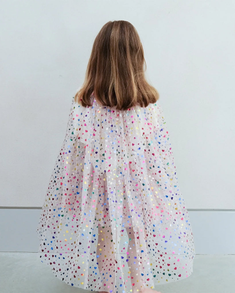 Faites briller les yeux des enfants avec cette superbe cape de déguisement à cœurs multicolores. Légère et scintillante, elle reflète toutes les couleurs de l’arc-en-ciel pour un effet magique à chaque mouvement.