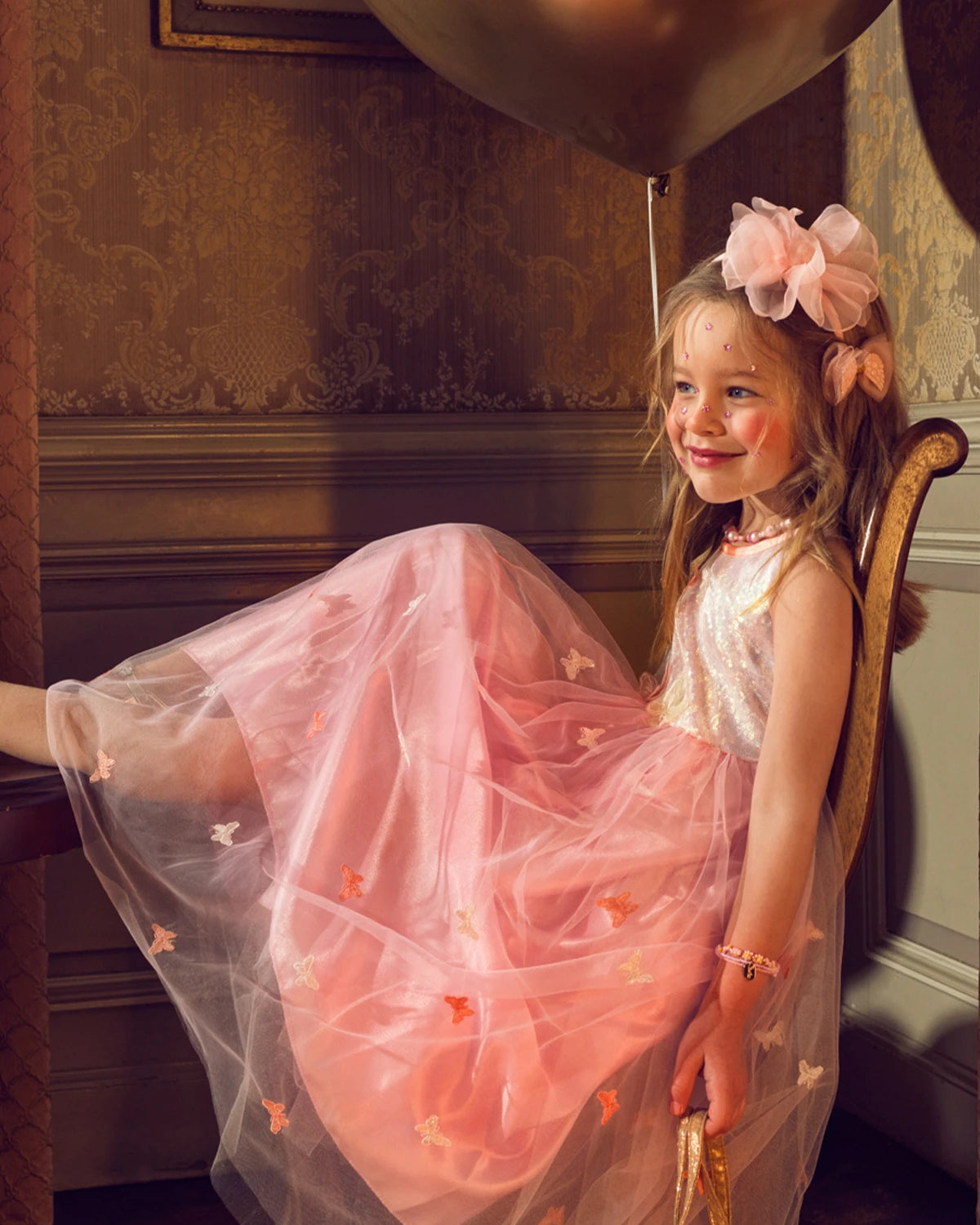 Découvrez la Robe Princesse Rose de Bobine Paris, un véritable rêve pour les petites filles qui aiment se transformer en héroïnes de contes de fées. Confectionnée en tulle léger et délicat, cette robe rose est ornée de détails raffinés qui captivent l'imagination.