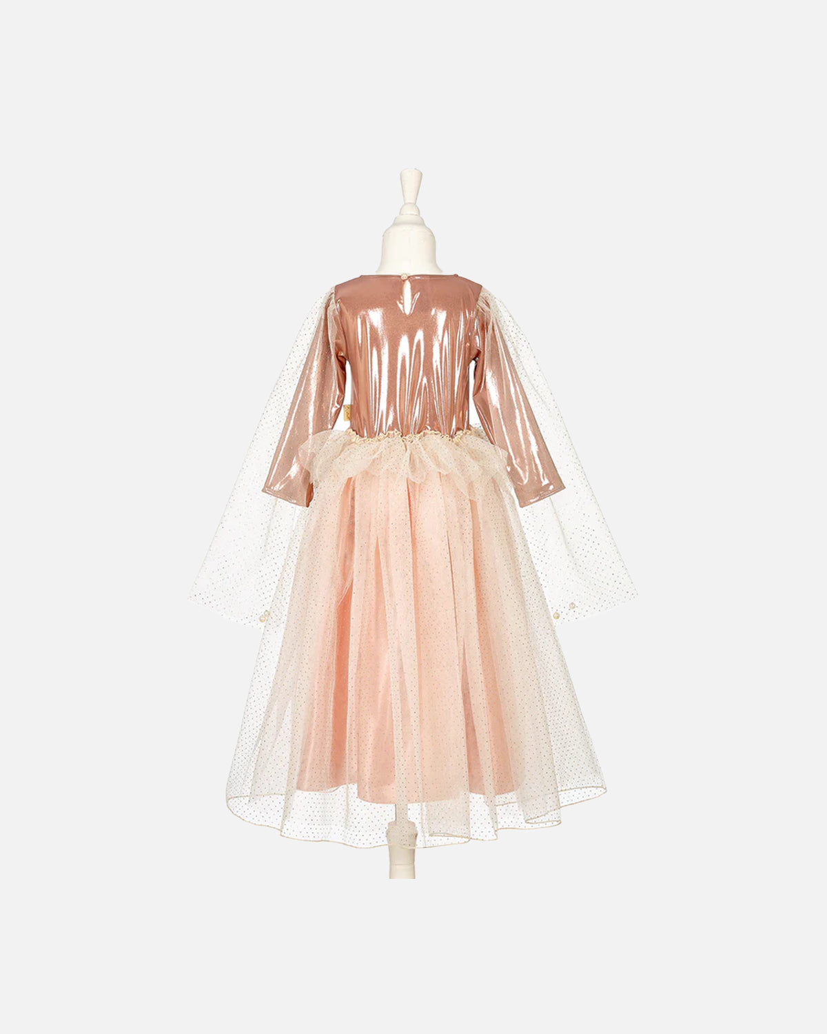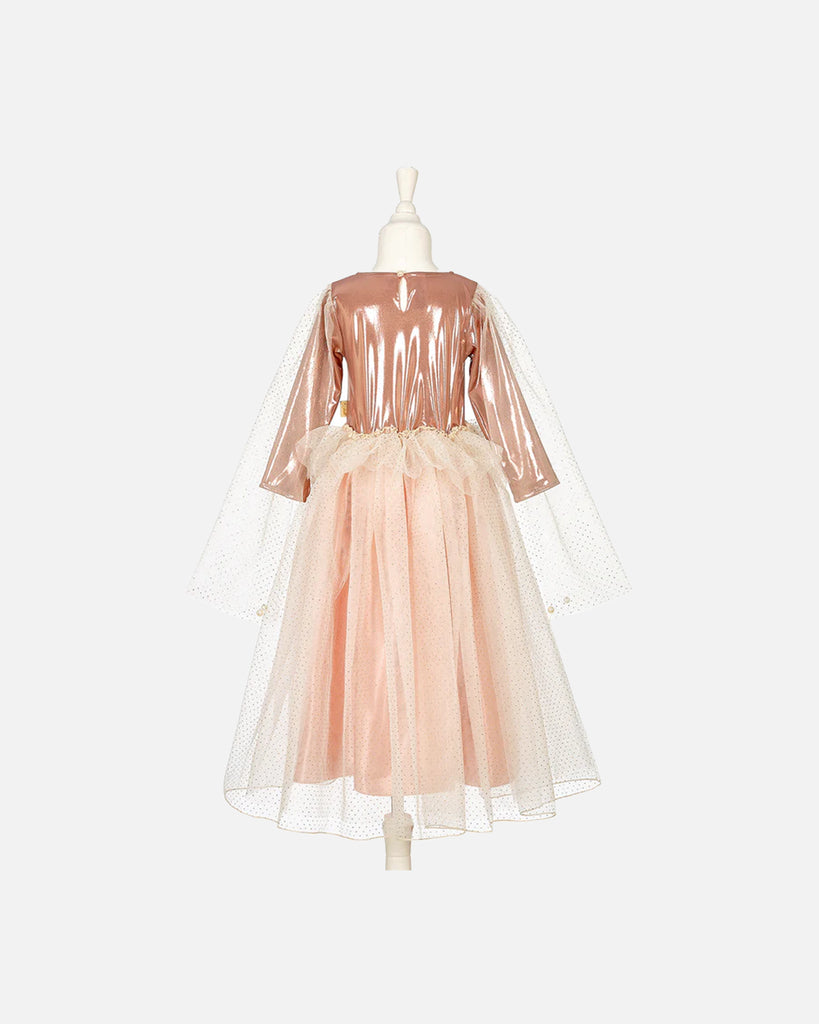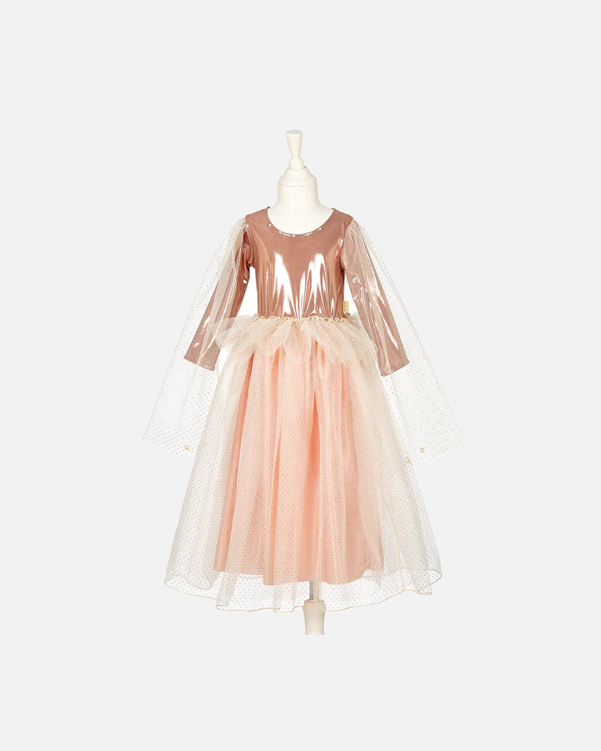 Laissez la magie opérer avec la robe de princesse Amalia. Son bustier rose métallisé apporte une touche éclatante, tandis que ses longues manches en tulle pailleté créent un effet léger et féerique à chaque mouvement. La jupe ample, composée de plusieurs couches de tulle rose poudré, offre un volume majestueux parfait pour tourbillonner comme dans un vrai conte de fées. Élégante, lumineuse et confortable, cette robe est idéale pour les anniversaires, les fêtes, les spectacles ou les jeux imaginaires. Avec Amalia, chaque enfant devient la reine de sa propre histoire