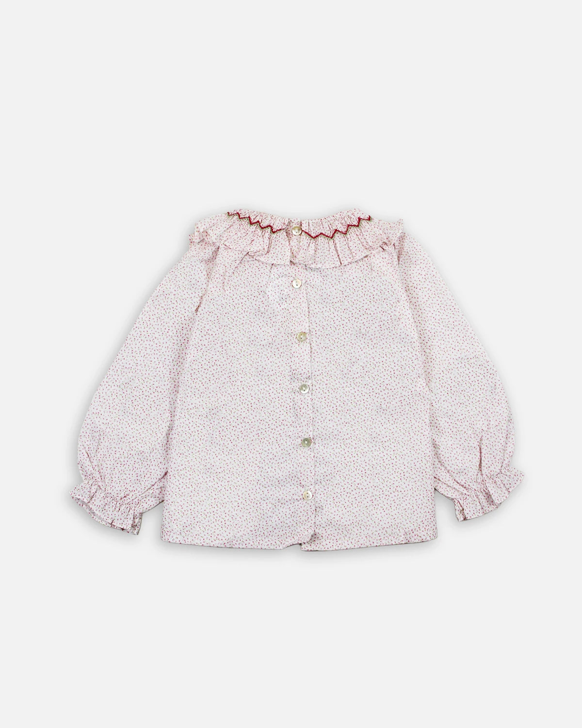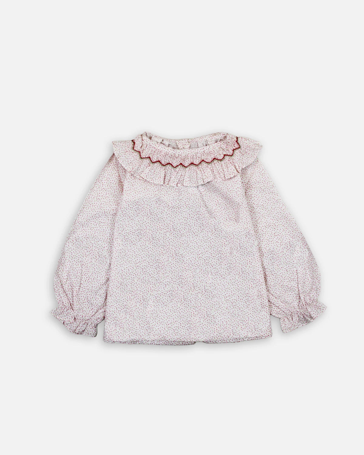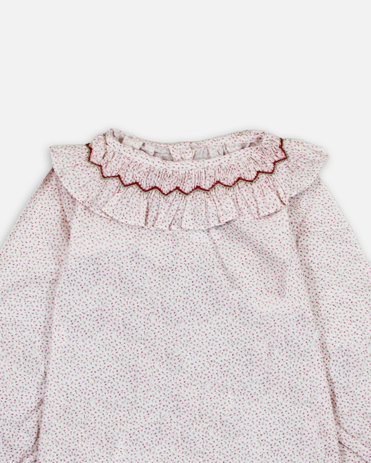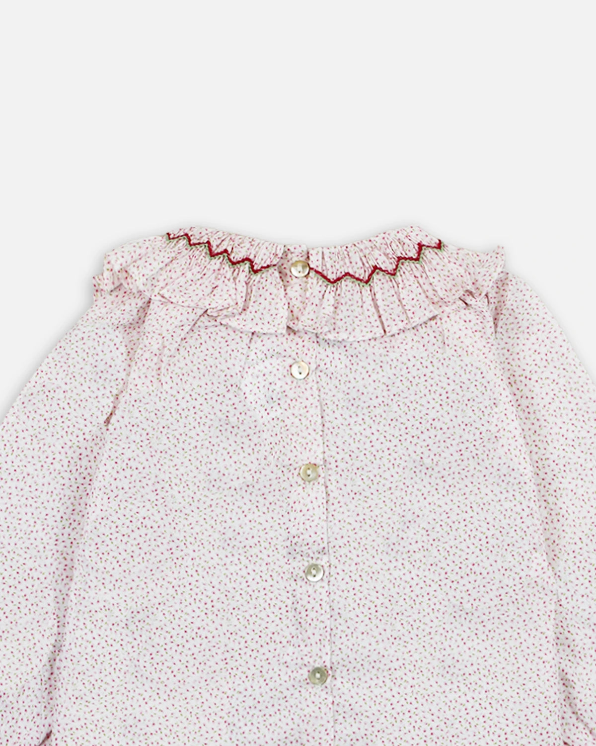 Cette blouse bébé Pia fille se distingue par son imprimé fleuri aux teintes pastel, apportant douceur et poésie à la tenue. Son large col volanté, délicatement orné d’une finition contrastée, encadre joliment le cou et ajoute une touche raffinée et élégante.
