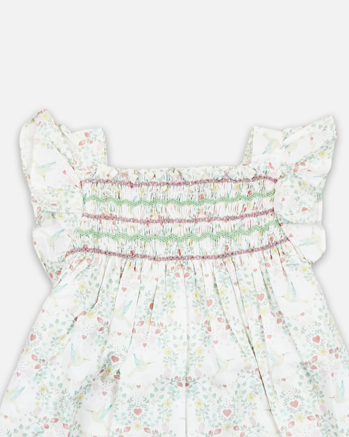 Robe bébé Atalante fleurs pastel et oiseaux