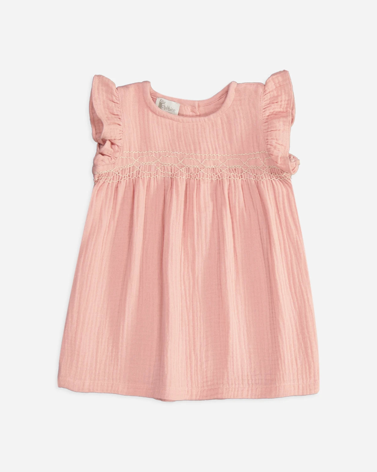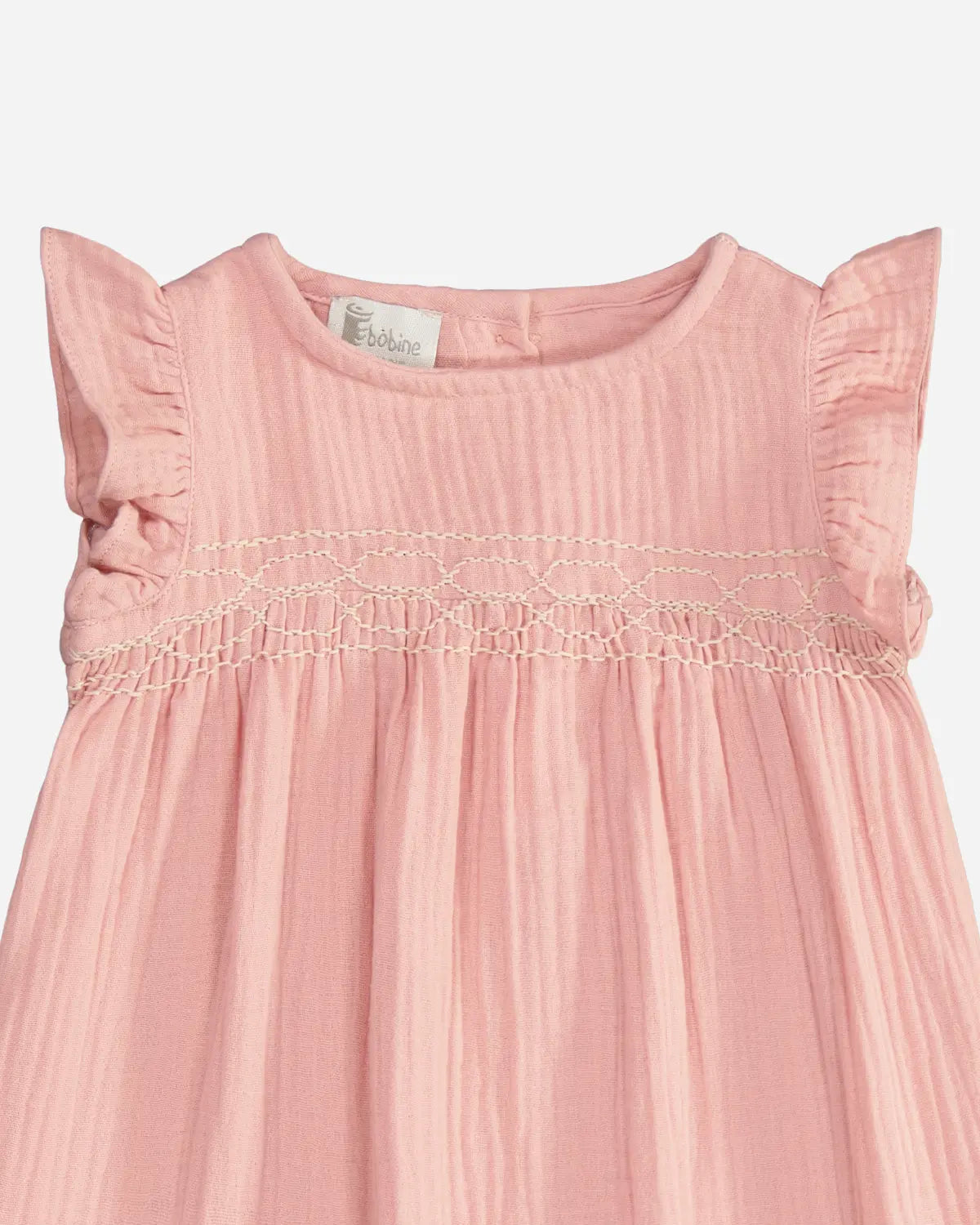 Optez pour la délicate robe Siegrid pour petite fille en gaze de coton rose. Grâce à son gaze de coton et ses manches volantées, cette petite robe est très confortable et légère ce qui la rend absolument idéale pour la belle saison. Que ce soit seule ou associée à un panty, elle permet de créer des looks charmants.
