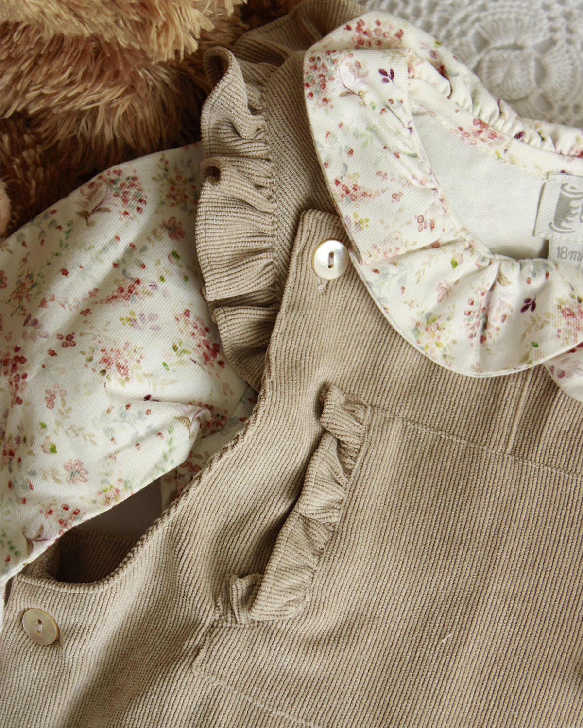 Salopette bébé Léa en velours beige