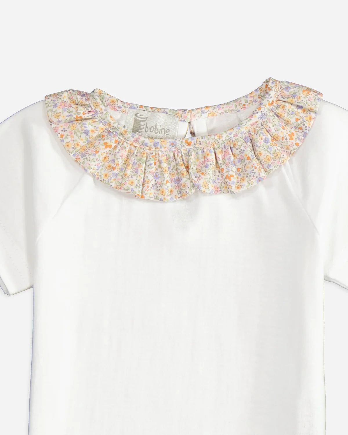 T-shirt bébé à col volanté fleuri jaune
