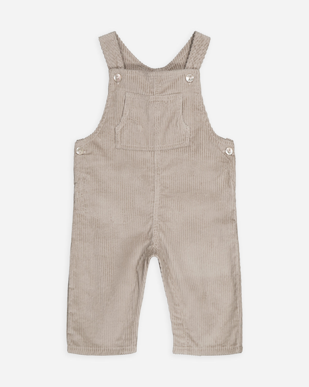 La salopette bébé longue en velours côtelé beige est un indispensable de la saison. Agrémentée de boutons nacrés à la taille et aux bretelles, l'habillage est facilité.