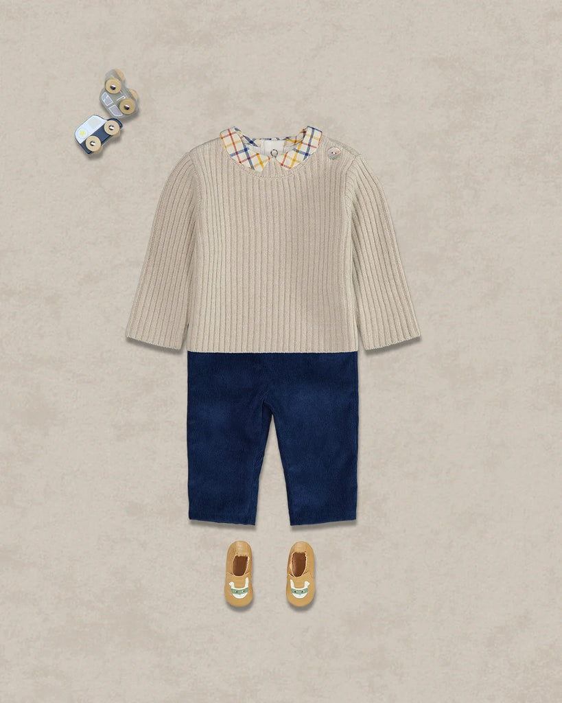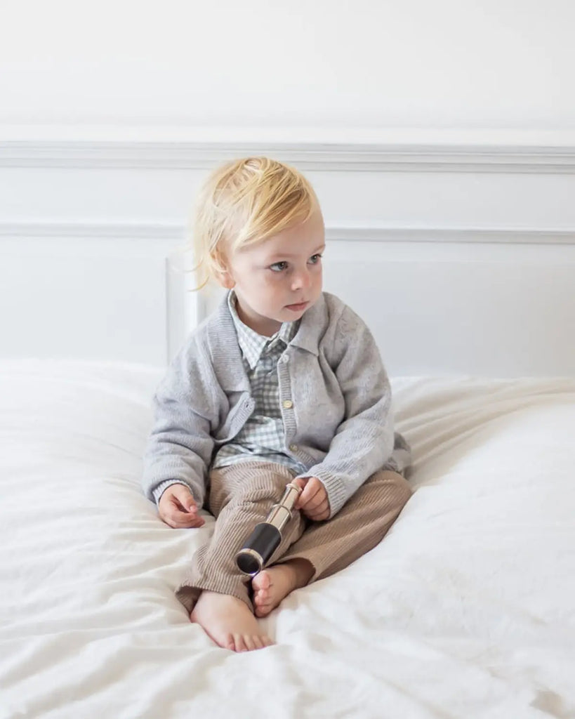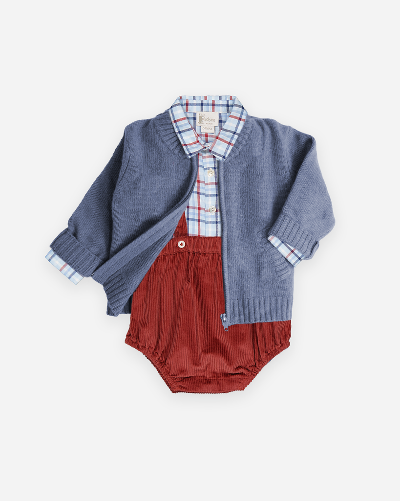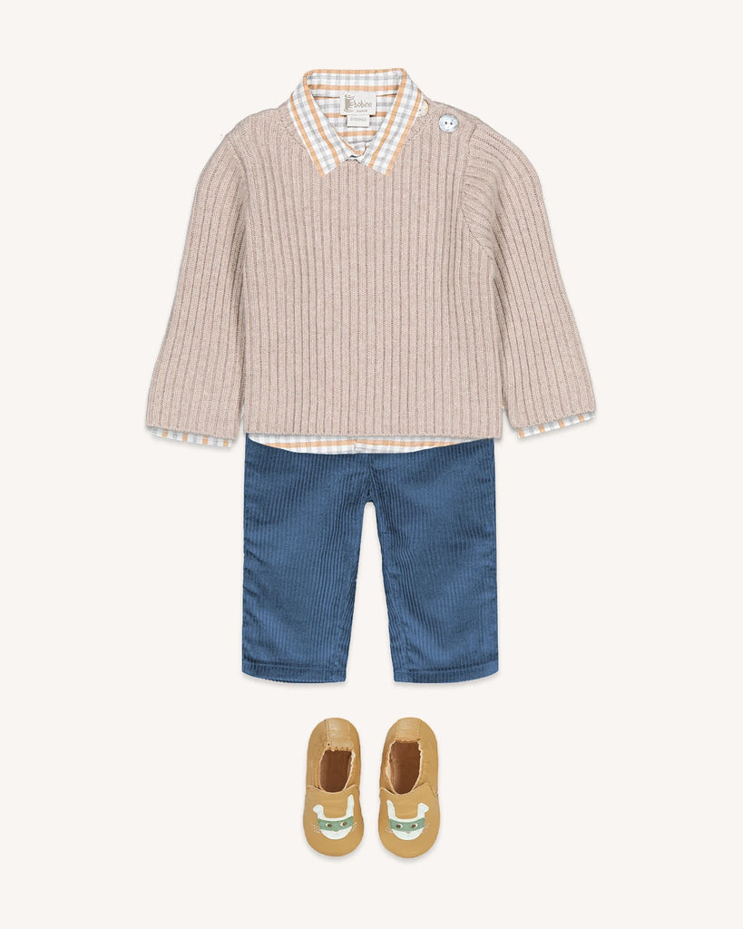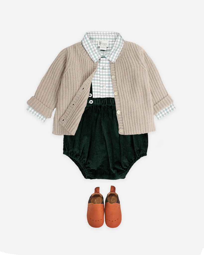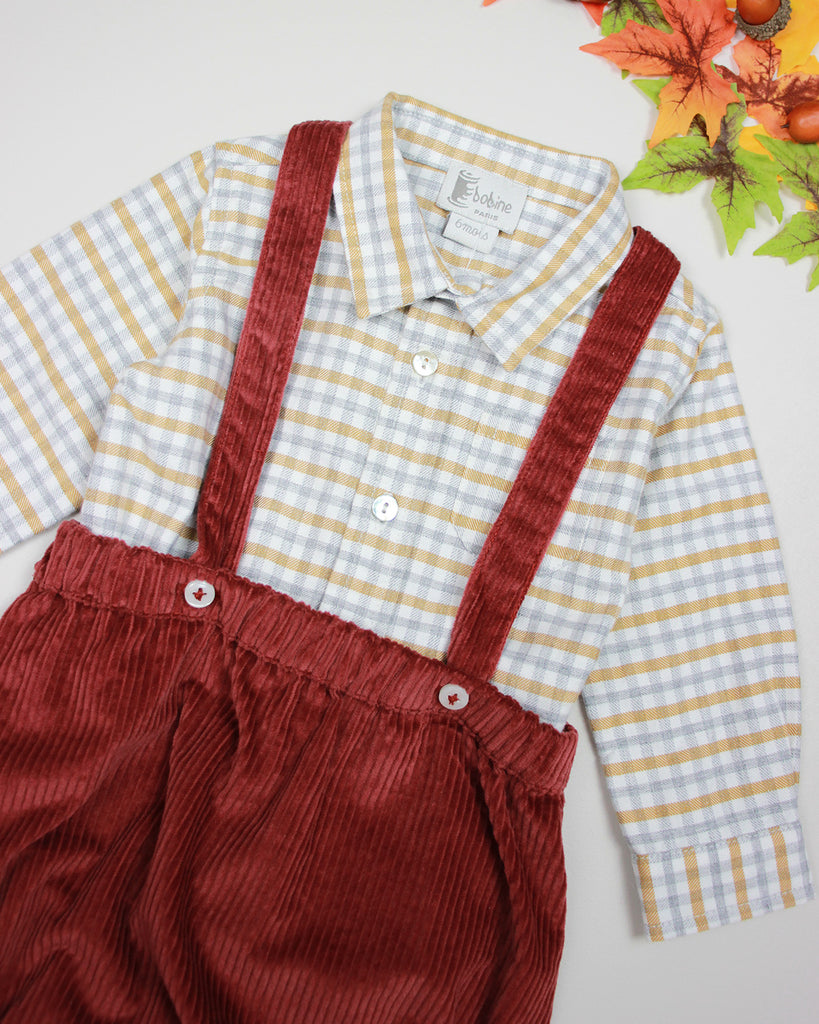 Dans la collection, vous trouverez des combinaisons stylisées, des chemises à petits motifs, des pantalons confortables avec taille élastique, ainsi que des cardigans ou pulls douillets pour compléter l’ensemble. Tous les éléments sont pensés pour s’harmoniser et créer des ensembles bébé garçon qui respirent le style parisien, dans un esprit de simplicité et de classe. Ainsi, chaque ensemble bébé garçon Bobine Paris devient plus qu’une simple tenue : c’est une pièce de mode.