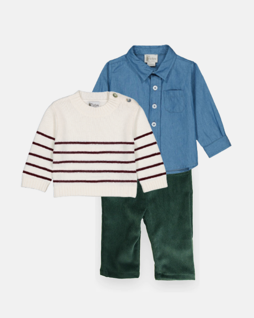 Bobine Paris conçoit des ensembles bébé garçon pour chaque instant de la vie de votre enfant. Des vêtements doux et confortables pour les journées à la maison, aux tenues élégantes pour les occasions spéciales, chaque ensemble bébé garçon est pensé pour convenir aux besoins quotidiens et aux grands moments. Nos ensembles bébé garçon incluent des combinaisons parfaites pour les sorties, des chemises élégantes pour les événements familiaux, et des pièces casual pour des moments de détente.