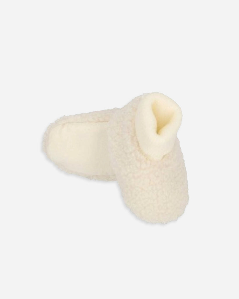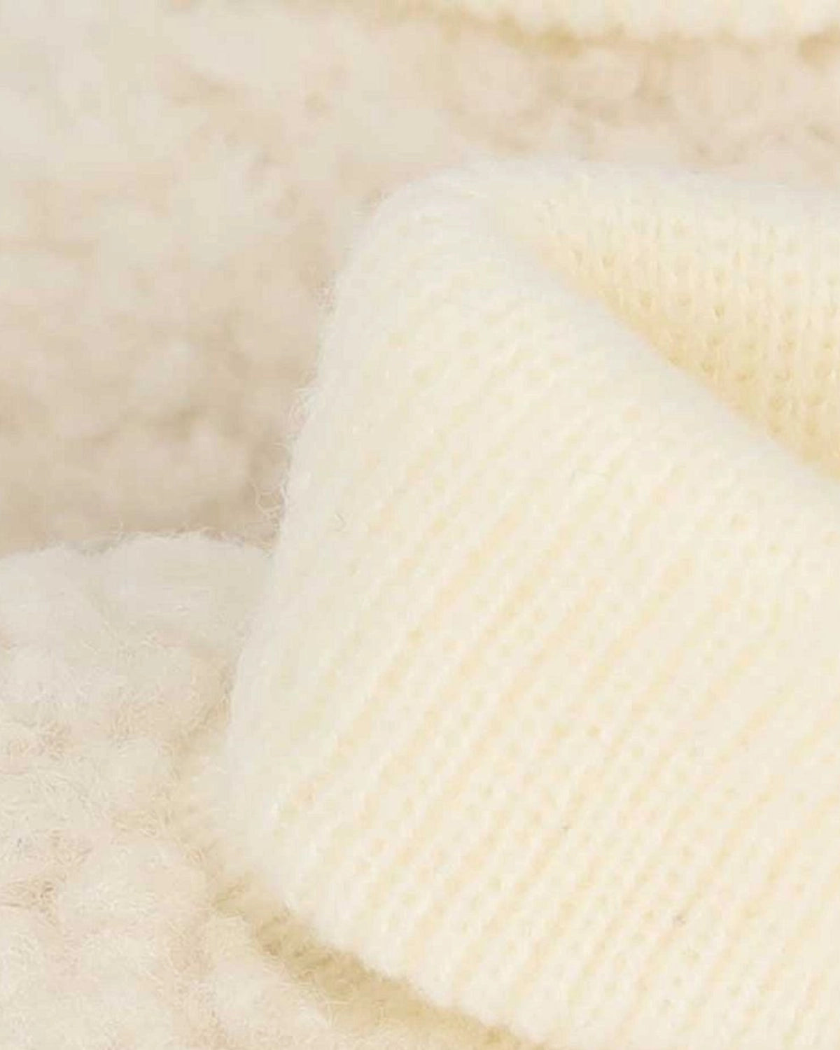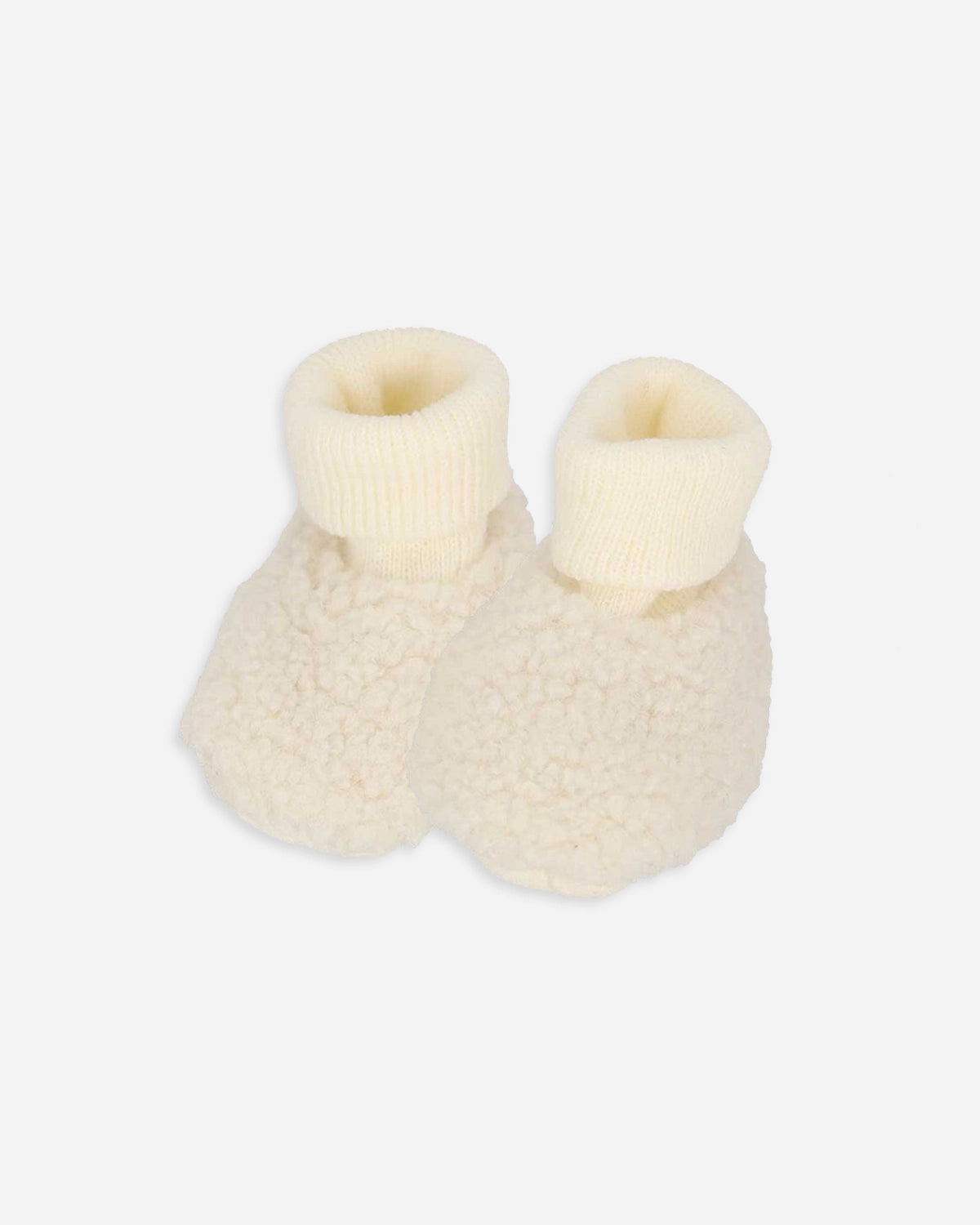 Ces chaussons bébé en bouclette écru sont un véritable cocon de douceur pour les petits pieds. Leur forme montante enveloppe délicatement la cheville, offrant chaleur et maintien tout en laissant bébé libre de ses mouvements. Confectionnés dans une matière moelleuse et respirante, ils allient confort et praticité au quotidien. Leur teinte écrue, douce et naturelle, s’accorde facilement avec toutes les tenues, pour un look aussi tendre qu’élégant.