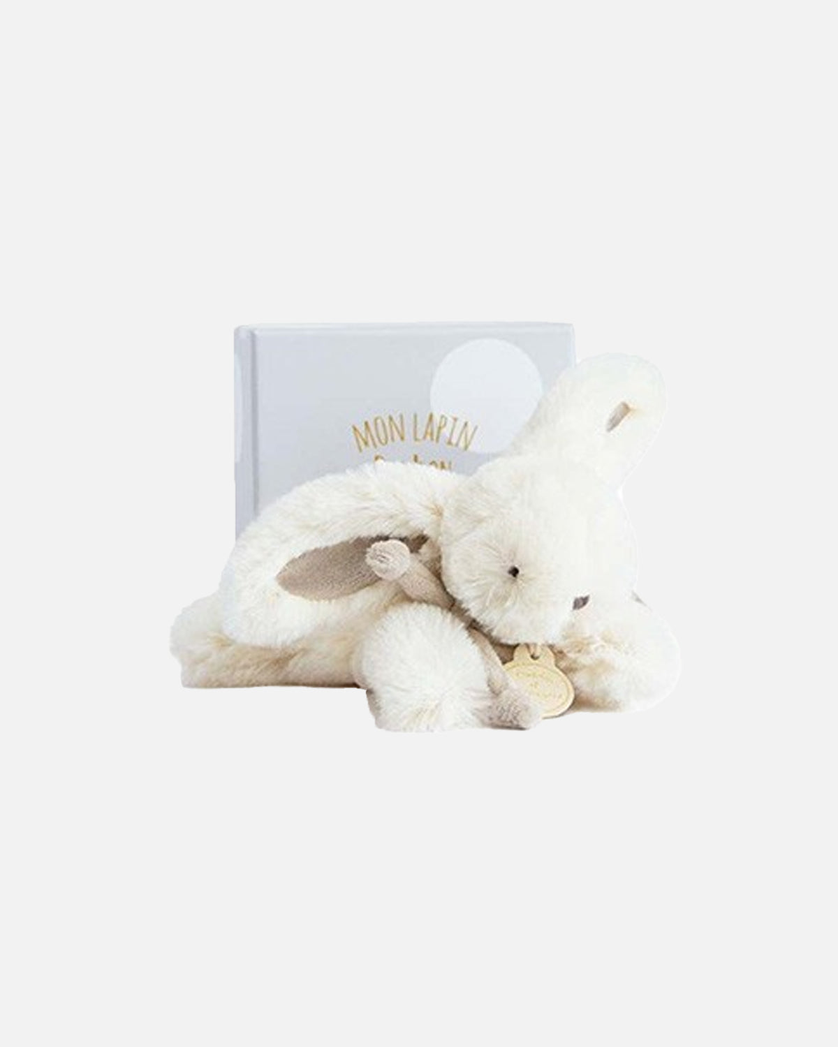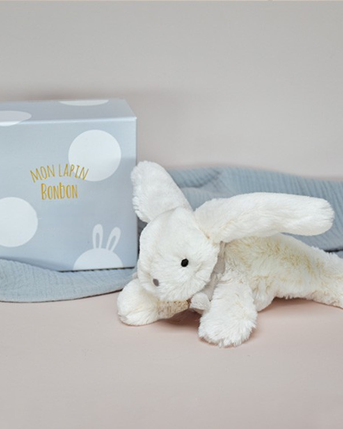 Ce ravissant doudou lapin taupe, présenté dans sa jolie boîte, est le cadeau de naissance idéal. Doux, apaisant et plein de tendresse, il deviendra rapidement le compagnon préféré de bébé. Ses longues oreilles, faciles à attraper, et sa texture moelleuse invitent aux câlins à tout moment. Livré dans une élégante boîte, il est prêt à offrir pour célébrer une naissance ou un baptême avec délicatesse et poésie.