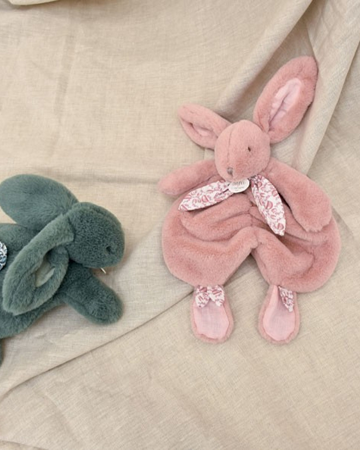 Découvrez ce doudou lapin d'une infinie délicatesse, pensé pour accompagner les tout-petits dès leurs premiers instants. Avec son allure de petit personnage et sa texture ultra-sensorielle, il allie parfaitement le réconfort d'une peluche et l'élégance d'un accessoire de créateur.