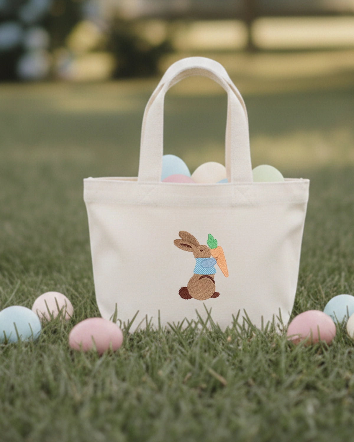Mini tote bag brodé Pâques lapin bleu
