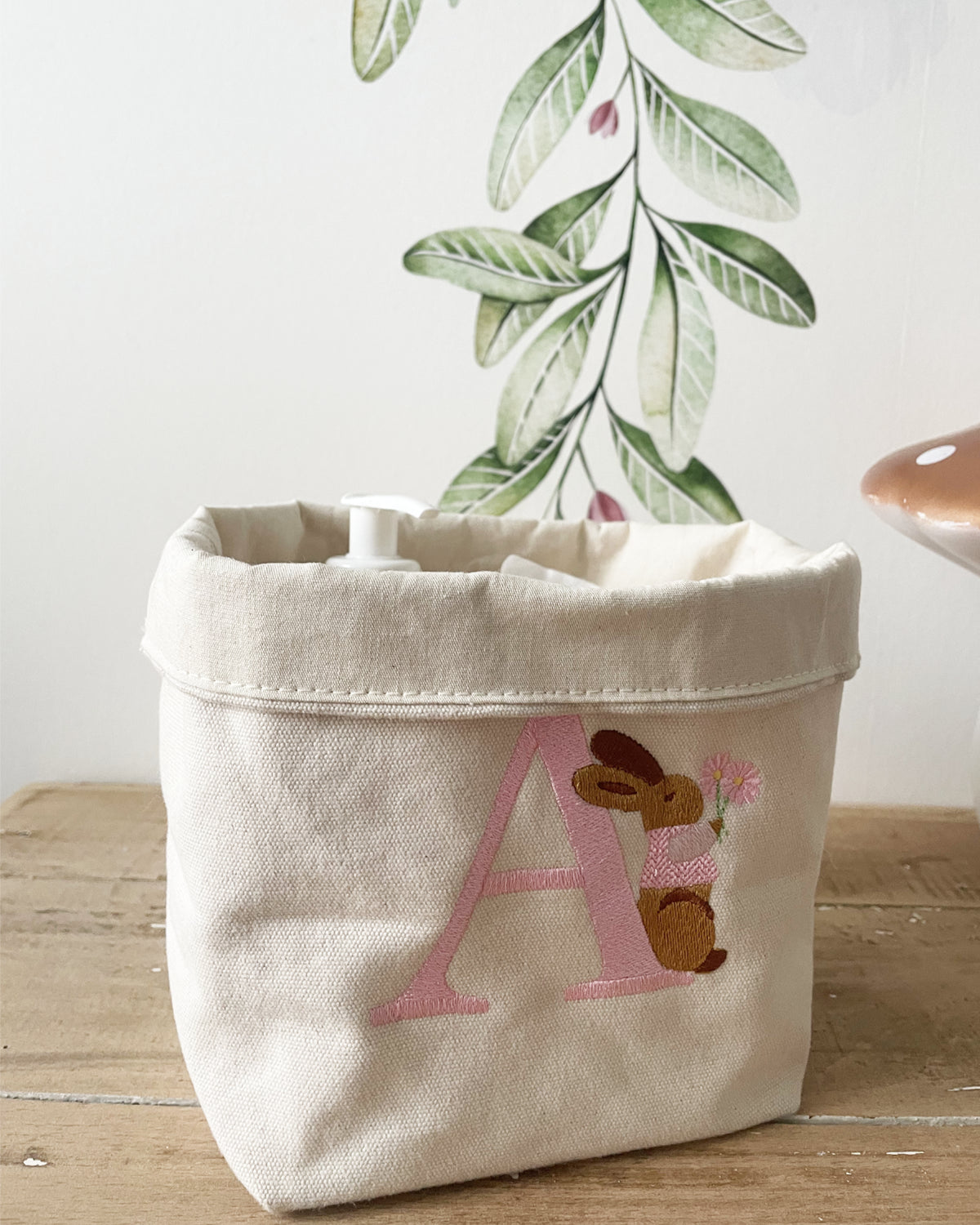 Panier lapin rose avec lettre personnalisable