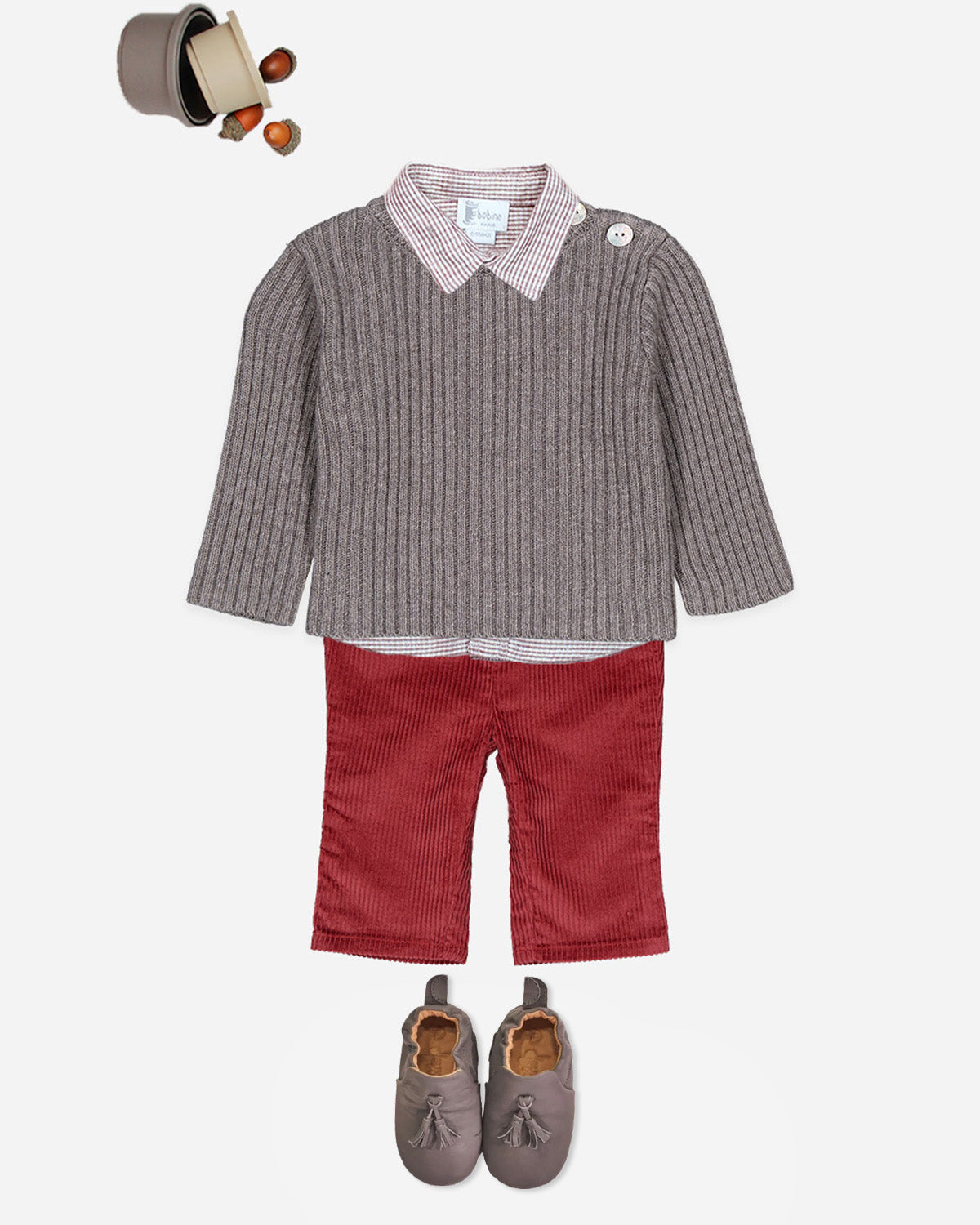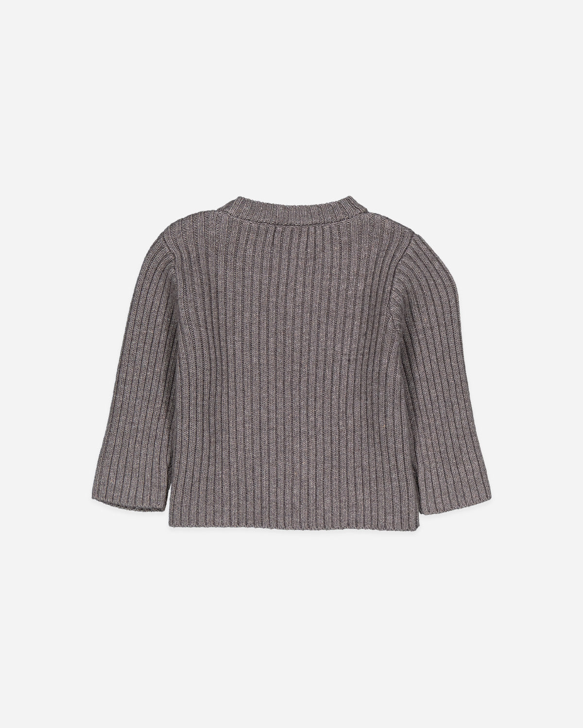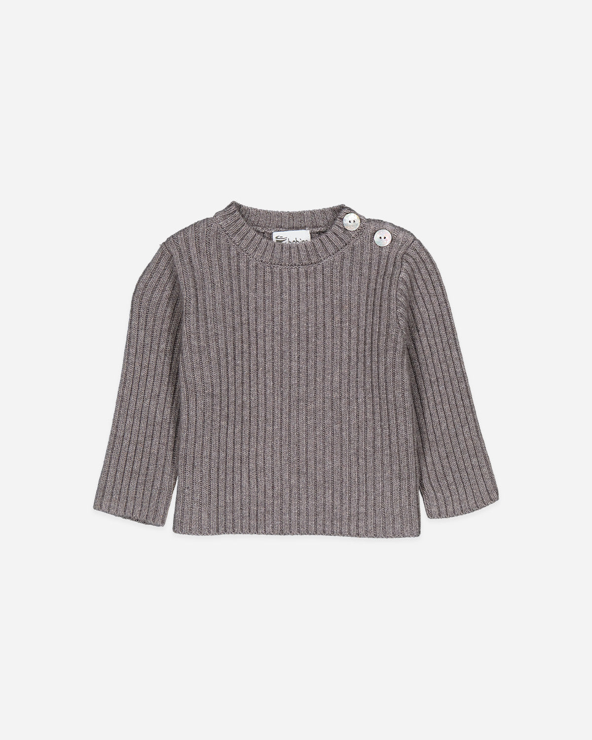 En laine et cachemire, le pull bebe à col rond enveloppe bébé dans un cocon doux et chaud. Ses détails côtelés et nacrés lui confèrent une allure élégante.