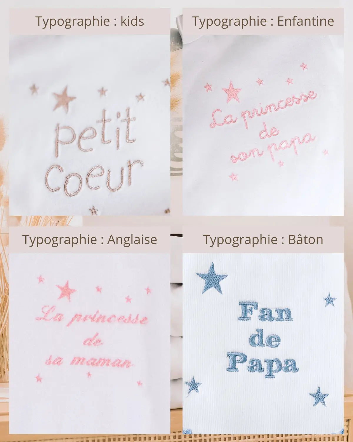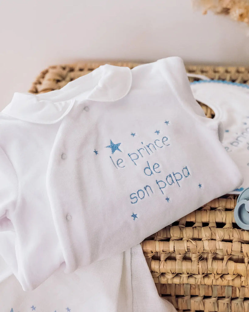 Le pyjama en coton blanc brodé "Le prince de son papa" accompagnera votre bébé dès la maternité jusqu'aux premières années de sa vie. En velours doux, pratique et confortable, ce pyjama est parfait pour des nuits pleines de rêves et de tendresse, enveloppant votre tout-petit dans une chaleur réconfortante tout en lui offrant une liberté de mouvement optimale pour ses premières explorations du monde.