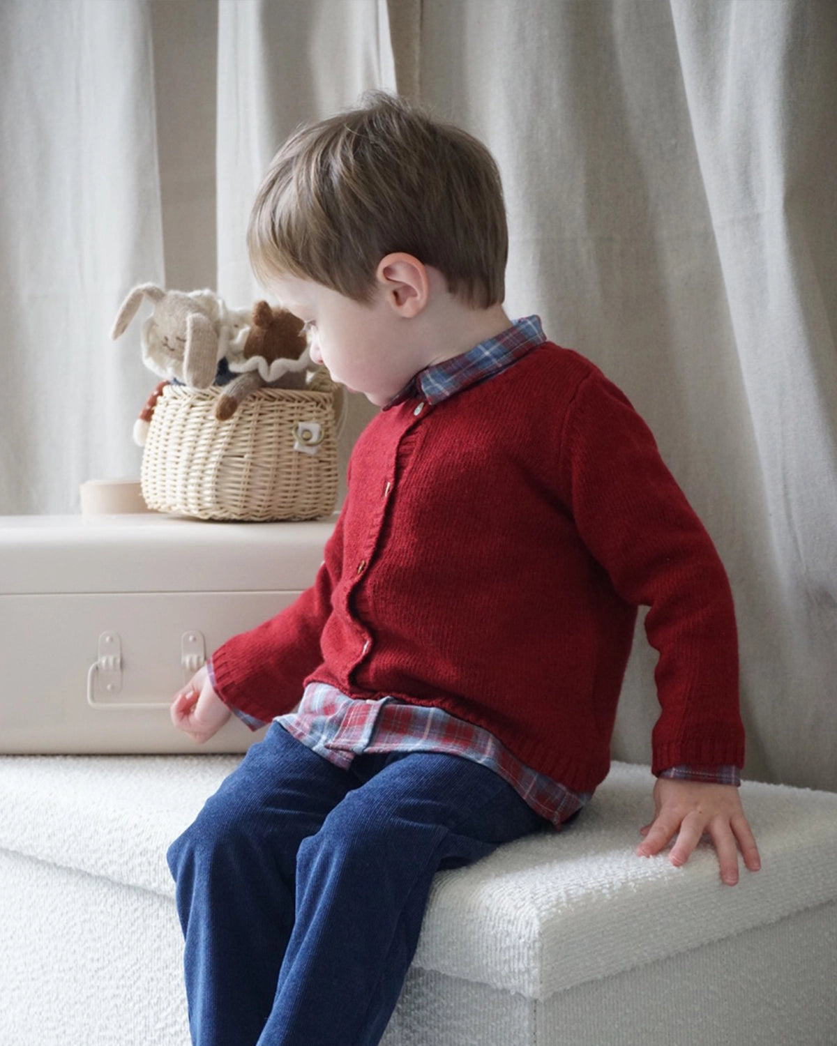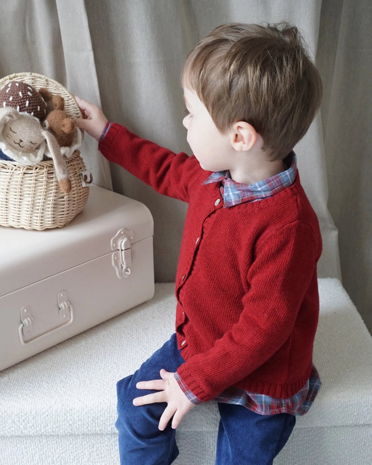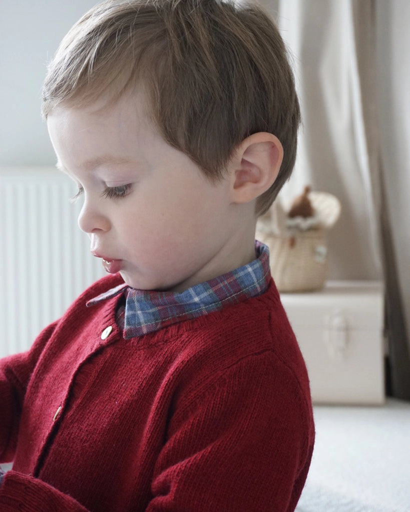 Cardigan bébé en laine et cachemire col rond grenat - est en rupture de stock et sera envoyé dès qu'il sera disponible