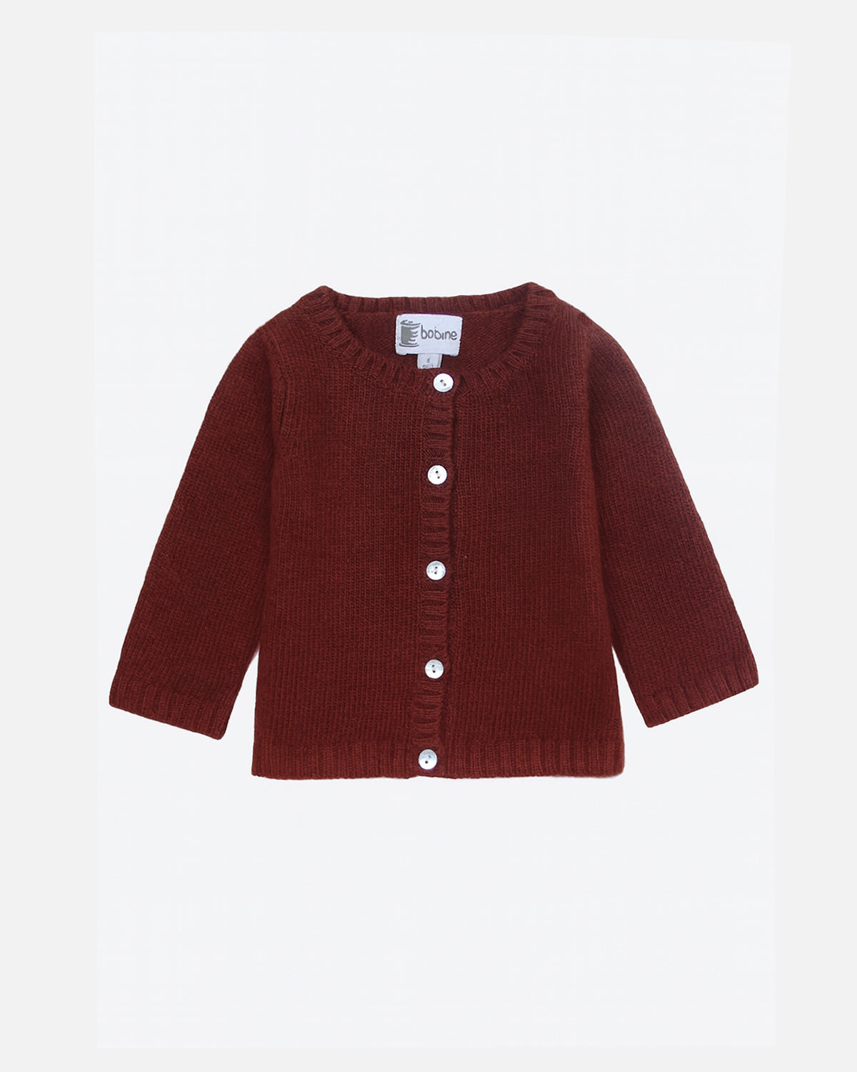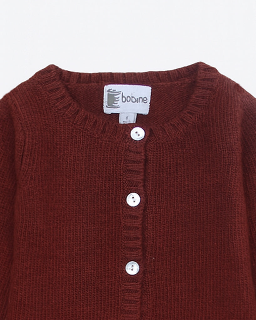 Cardigan en laine et cachemire col rond rouge vin - est en rupture de stock et sera envoyé dès qu'il sera disponible