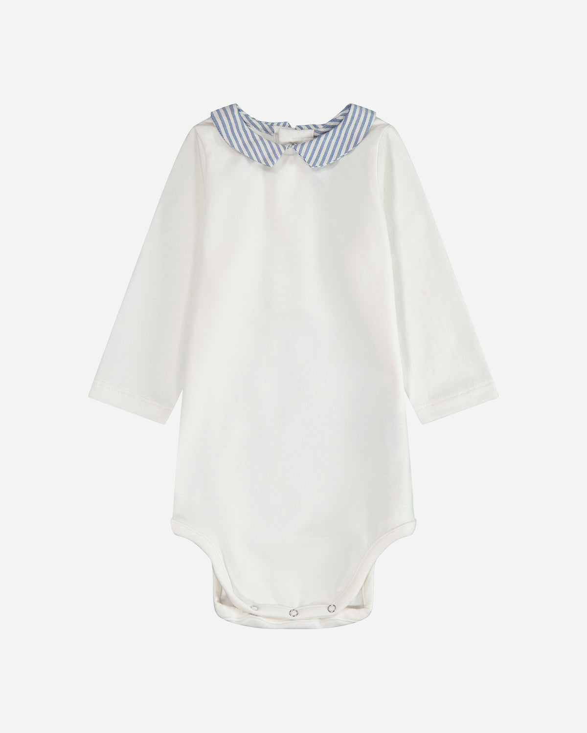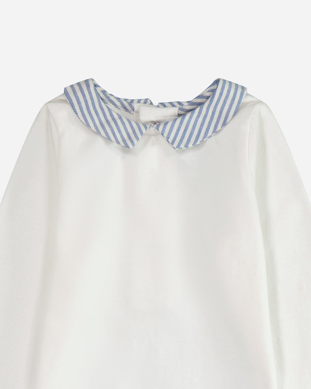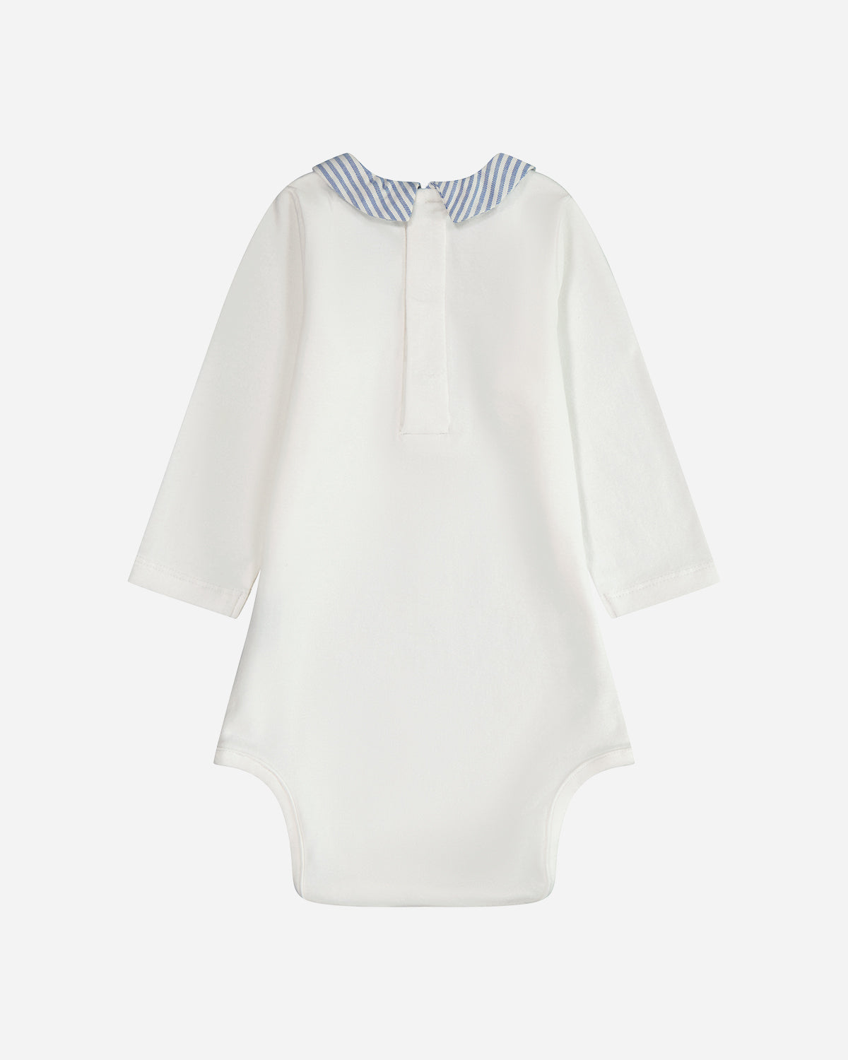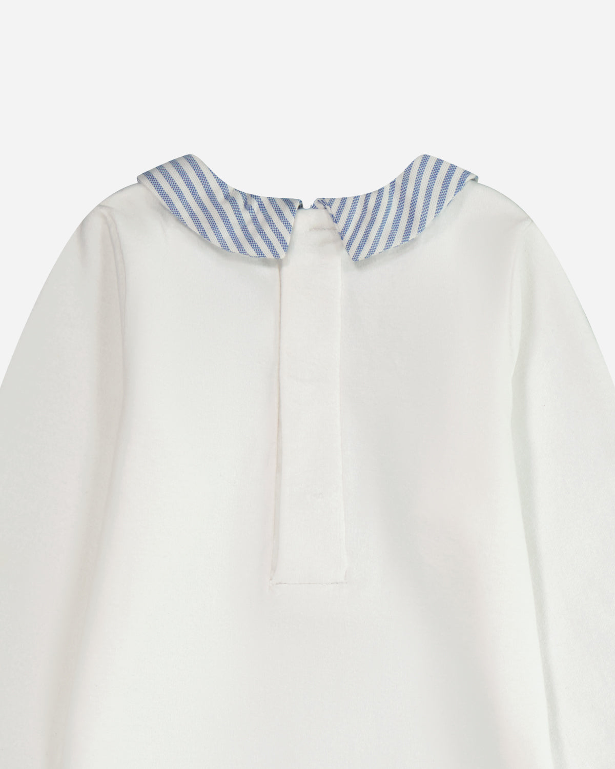Les rayures bleues du col apportent à cette tenue une élégance intemporelle. Les manches longues garantissent que bébé reste bien au chaud. Parfait pour les journées fraîches, ce vêtement associe harmonieusement style classique et confort optimal pour votre petit trésor.