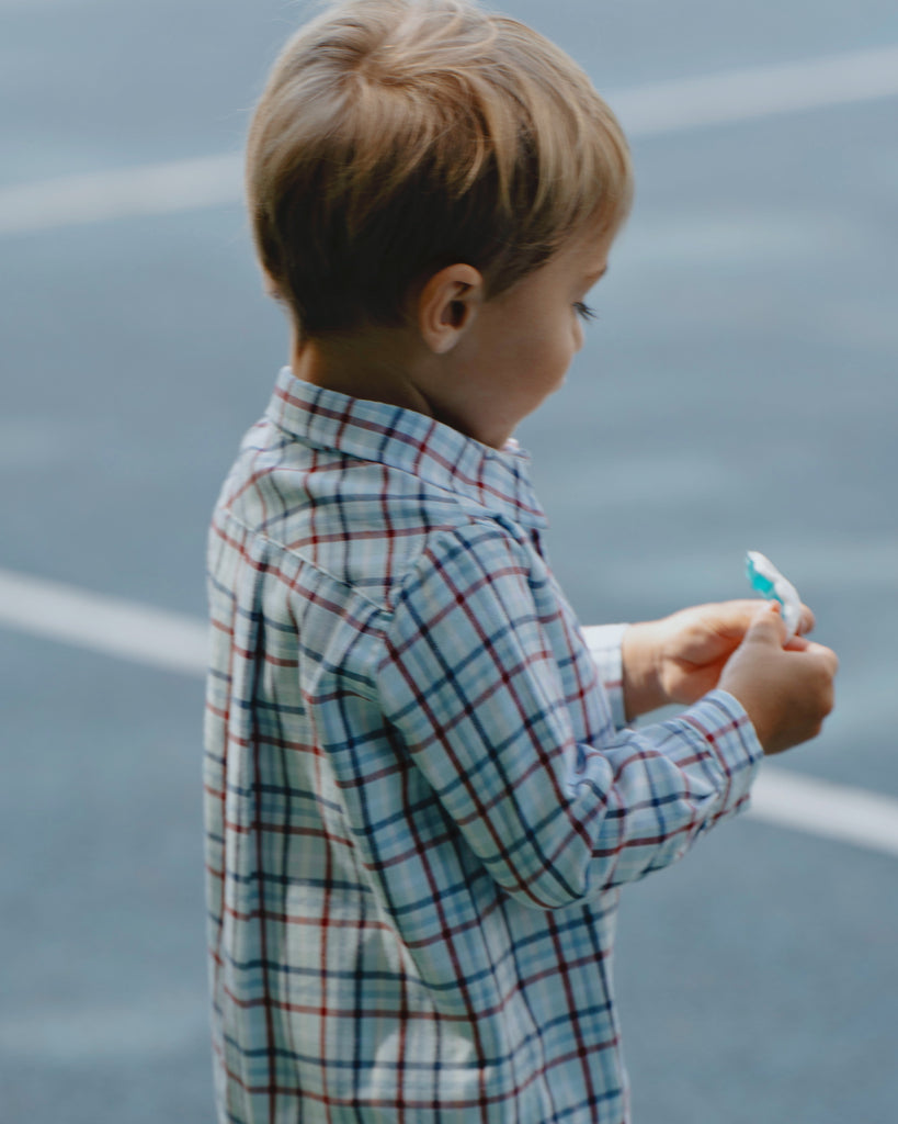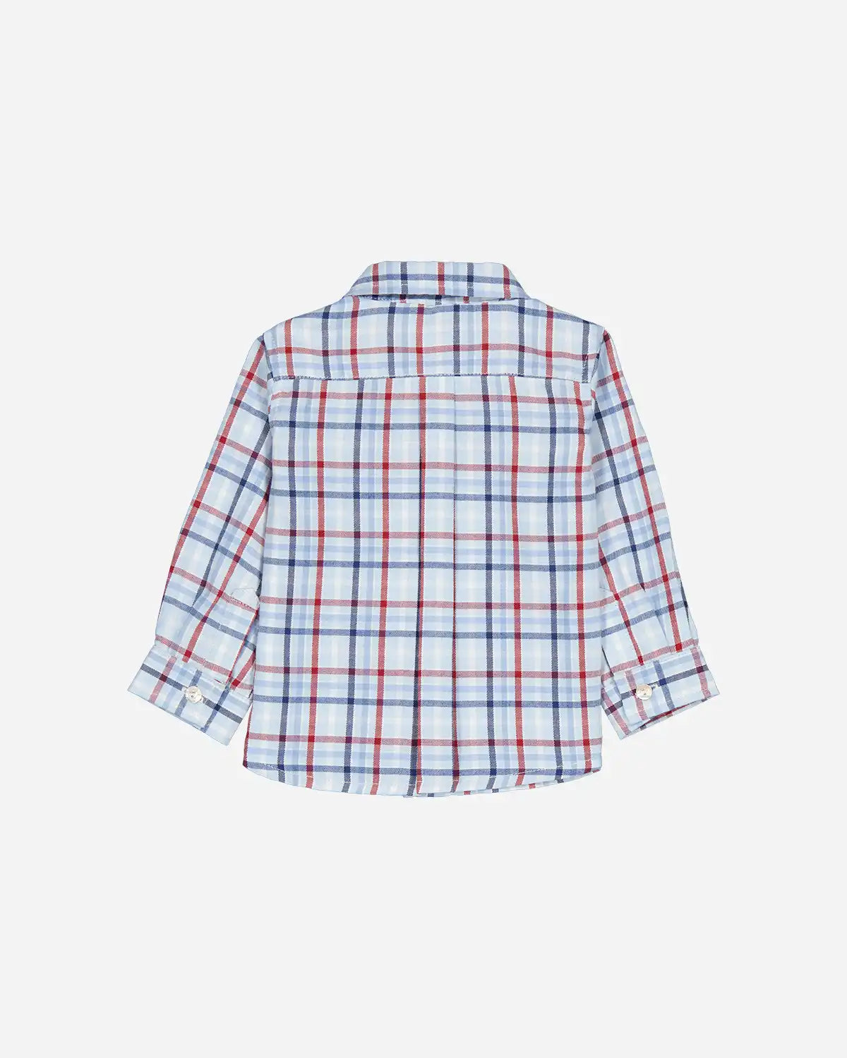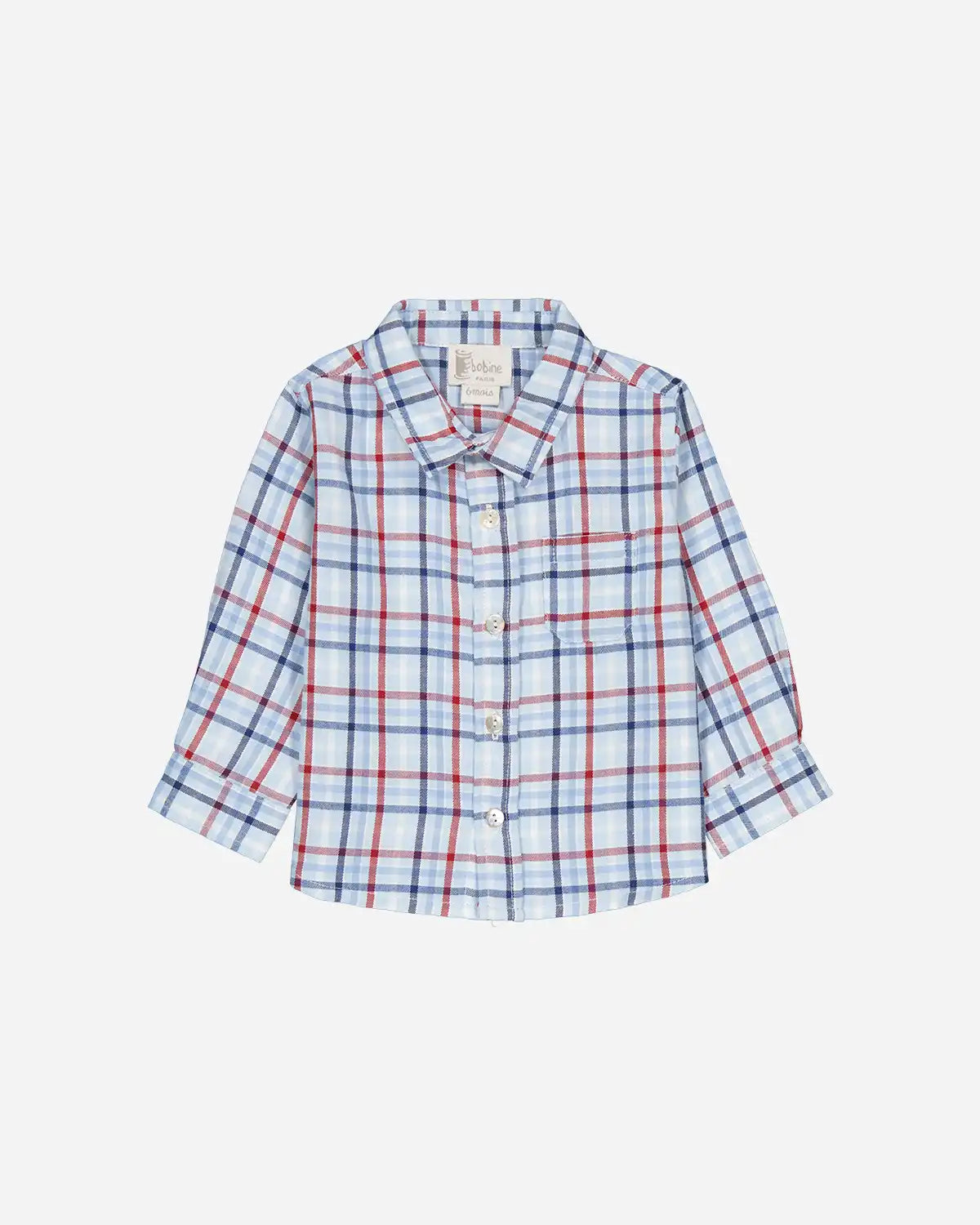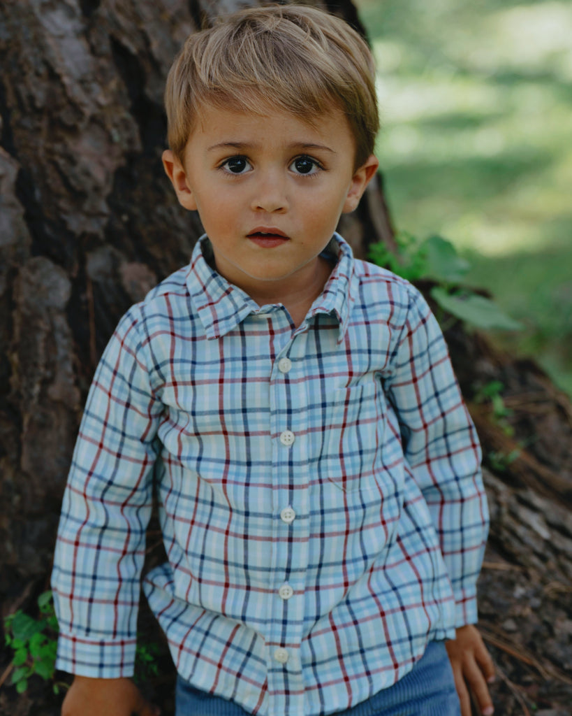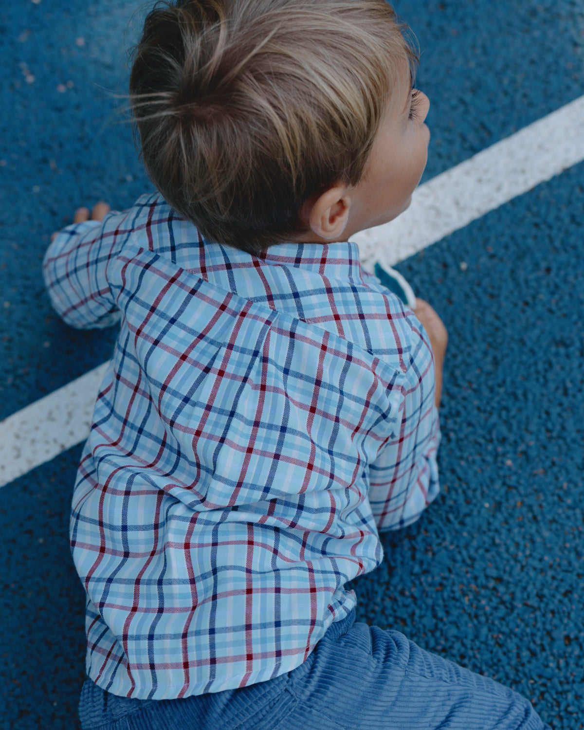 Les nuances vives de bleu et de rouge apportent une touche joyeuse de couleur à son look. Les boutons nacrés et le col pointu ajoutent des détails charmants à l'ensemble, créant une chemise à la fois élégante et décontractée. Idéale pour toutes les occasions, c'est un choix parfait pour les journées ensoleillées et les moments spéciaux.