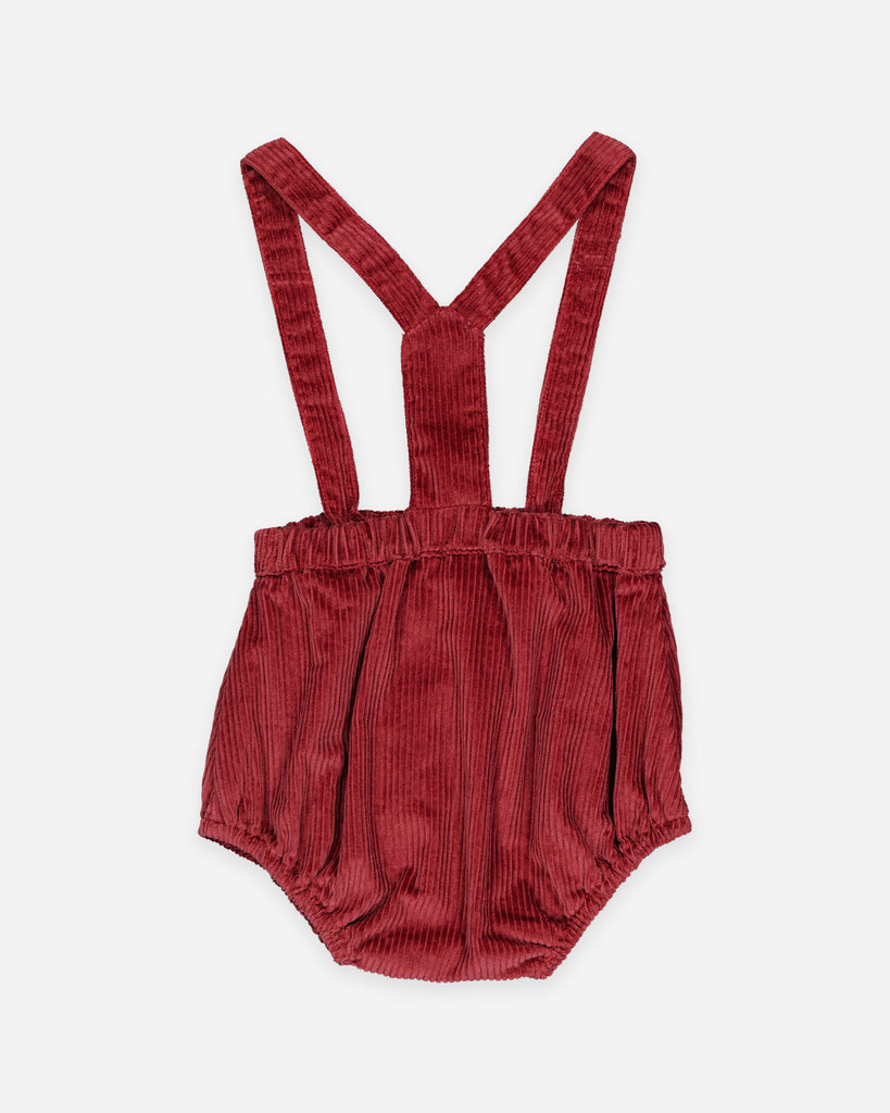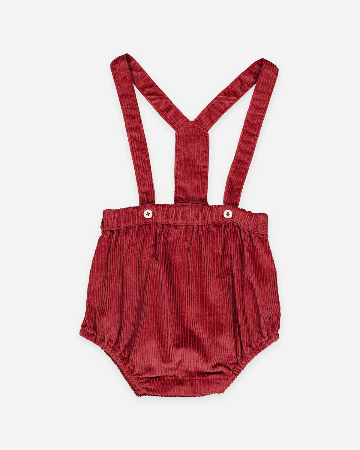Le bloomer à bretelles brique ajoute une jolie touche de couleur pour la saison. En velours à grosses côtes, il assure chaleur et confort pour bébé.