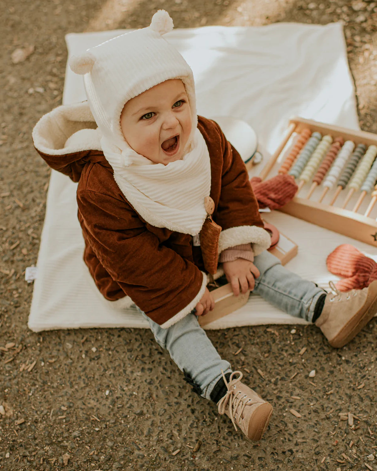 Tombez sous le charme de notre bonnet en velours écru, délicatement fabriqué en France à partir de matériaux de premier choix et sans produits chimiques. Ce bonnet combine parfaitement confort et élégance, offrant une excellente protection contre le froid. Avec ses détails raffinés et son velours côtelé, il apporte une touche de style unique.