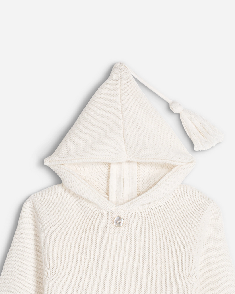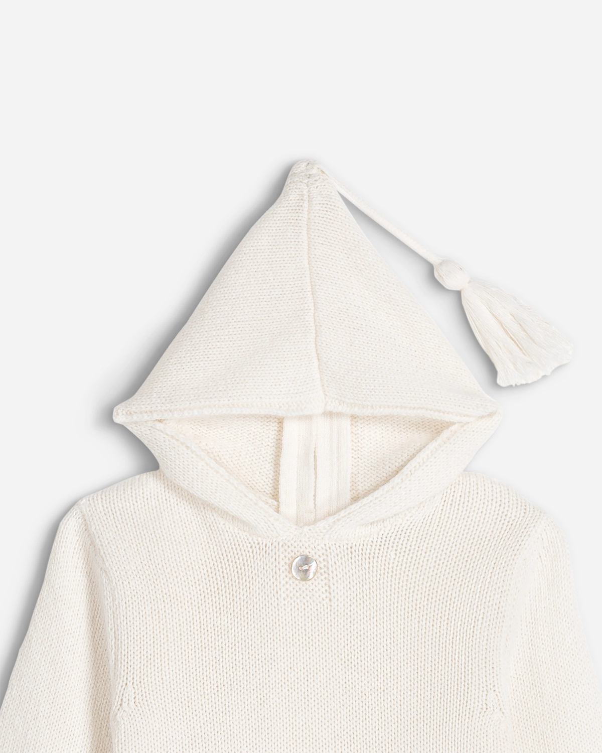 Laissez-vous séduire par notre burnous bébé en laine et cachemire. De couleur écru, ce burnous est idéal pour la saison et s'associe parfaitement avec les autres pièces du vestiaire de bébé. Sa fermeture au dos assure un habillage facile pour un maximum de confort. Il est idéal pour sublimer la garde-robe de votre bébé pour les saisons plus fraiches.