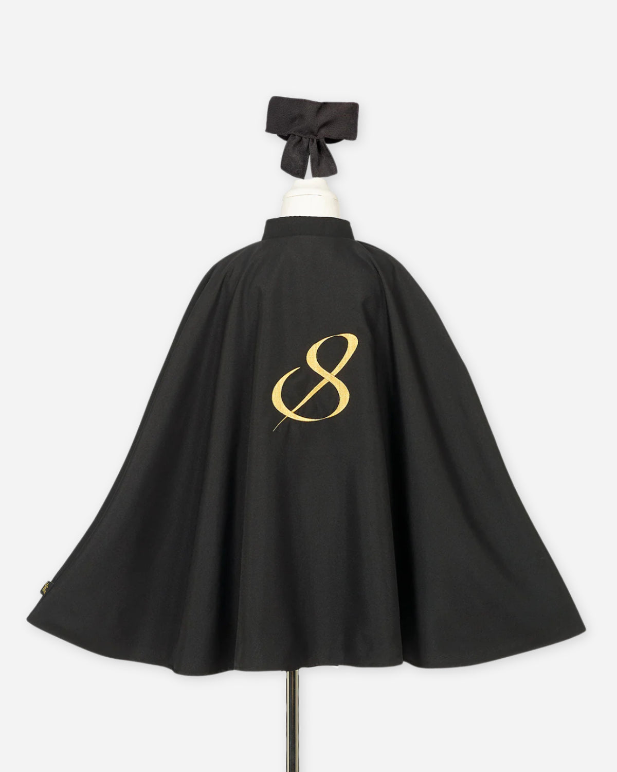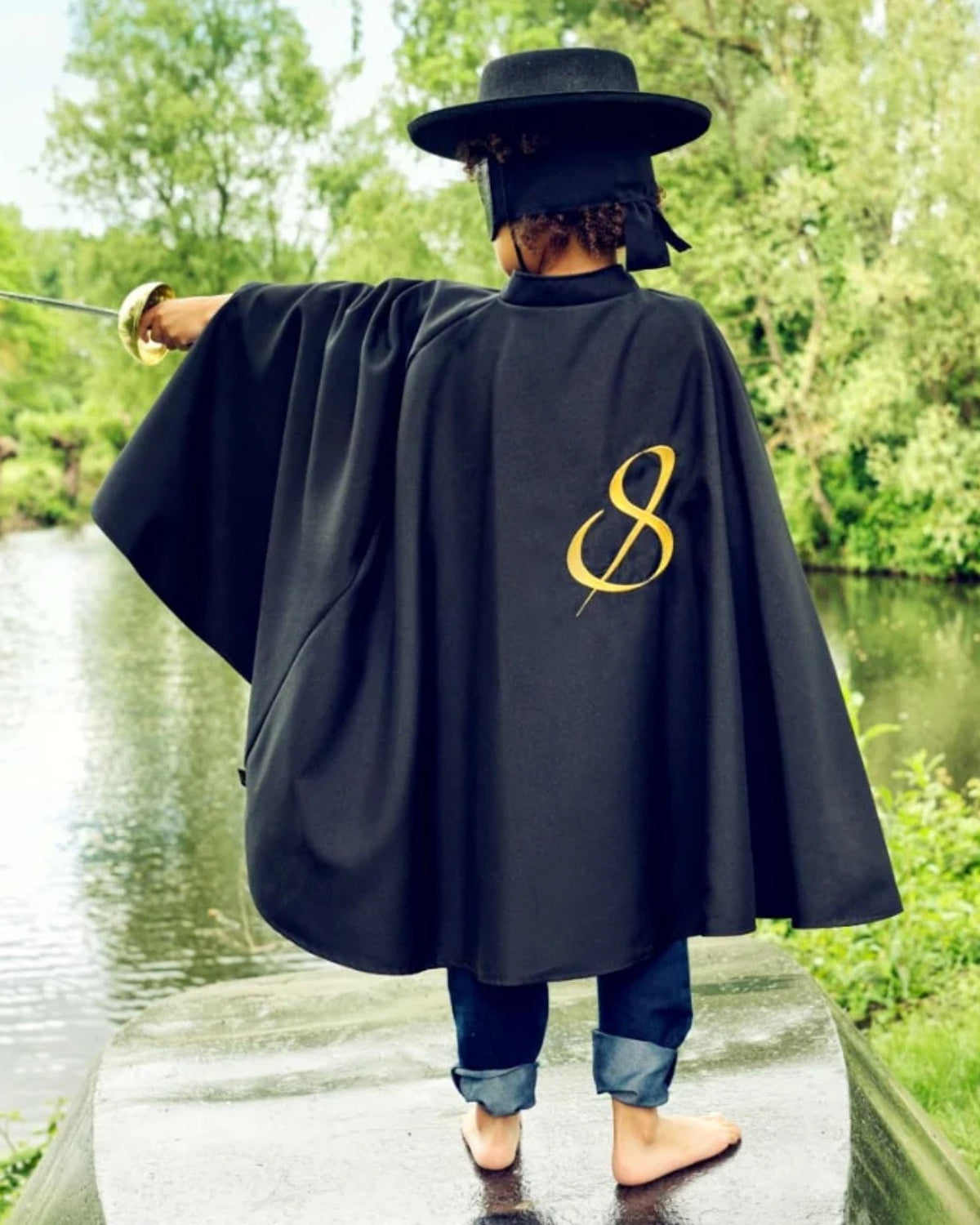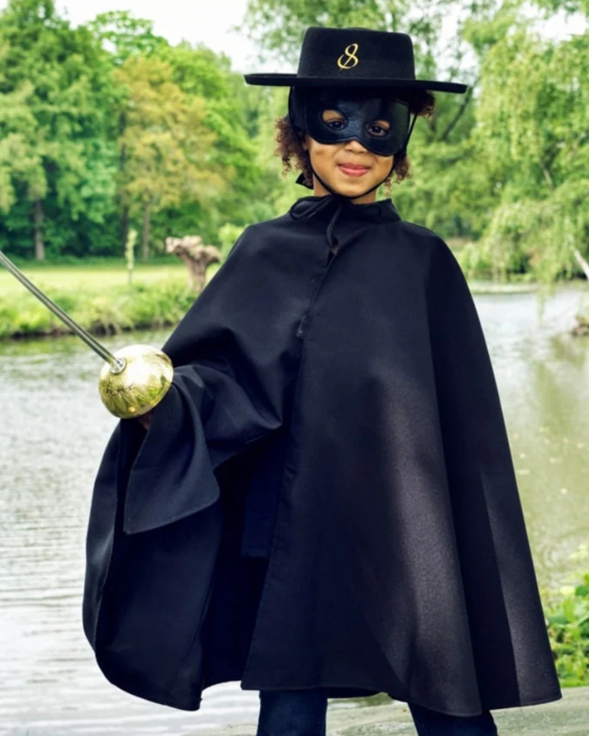 Le bandit Don Diego de la Vega est un homme respectable et noble le jour, mais la nuit, c'est un bandit qui combat l'injustice ! Avec son cheval Tornado, il vit les plus belles aventures, celles qui défendent une juste cause ! La cape et le masque de Vega sont 100 % polyester et mesurent 70 cm de long (4-8 ans).
