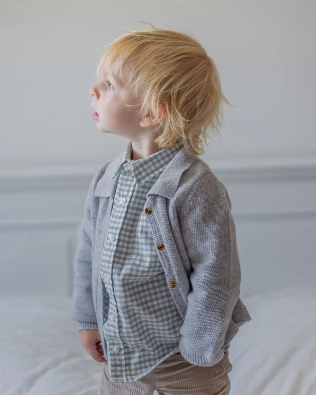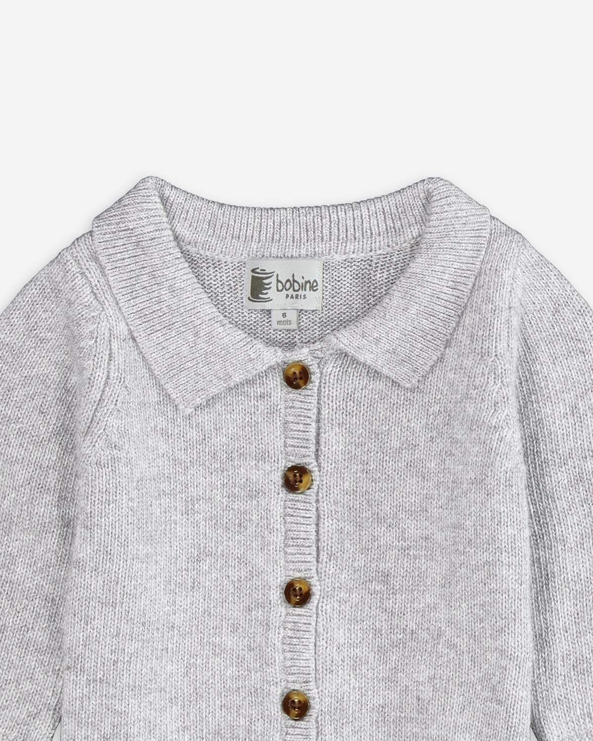 Avec ses manches longues et son col polo, ce cardigan allie confort et sophistication. La teinte perle mouchetée ajoute une touche neutre et passe-partout, parfaite pour toutes les tenues hivernales de votre bébé. Fabriqué avec soin, ce cardigan bebe offre une chaleur douillette tout en permettant à votre bébé de rester à la pointe de la mode. Un incontournable pour les jours plus frais, ce cardigan ajoute une note de charme à la garde-robe de votre petit trésor.