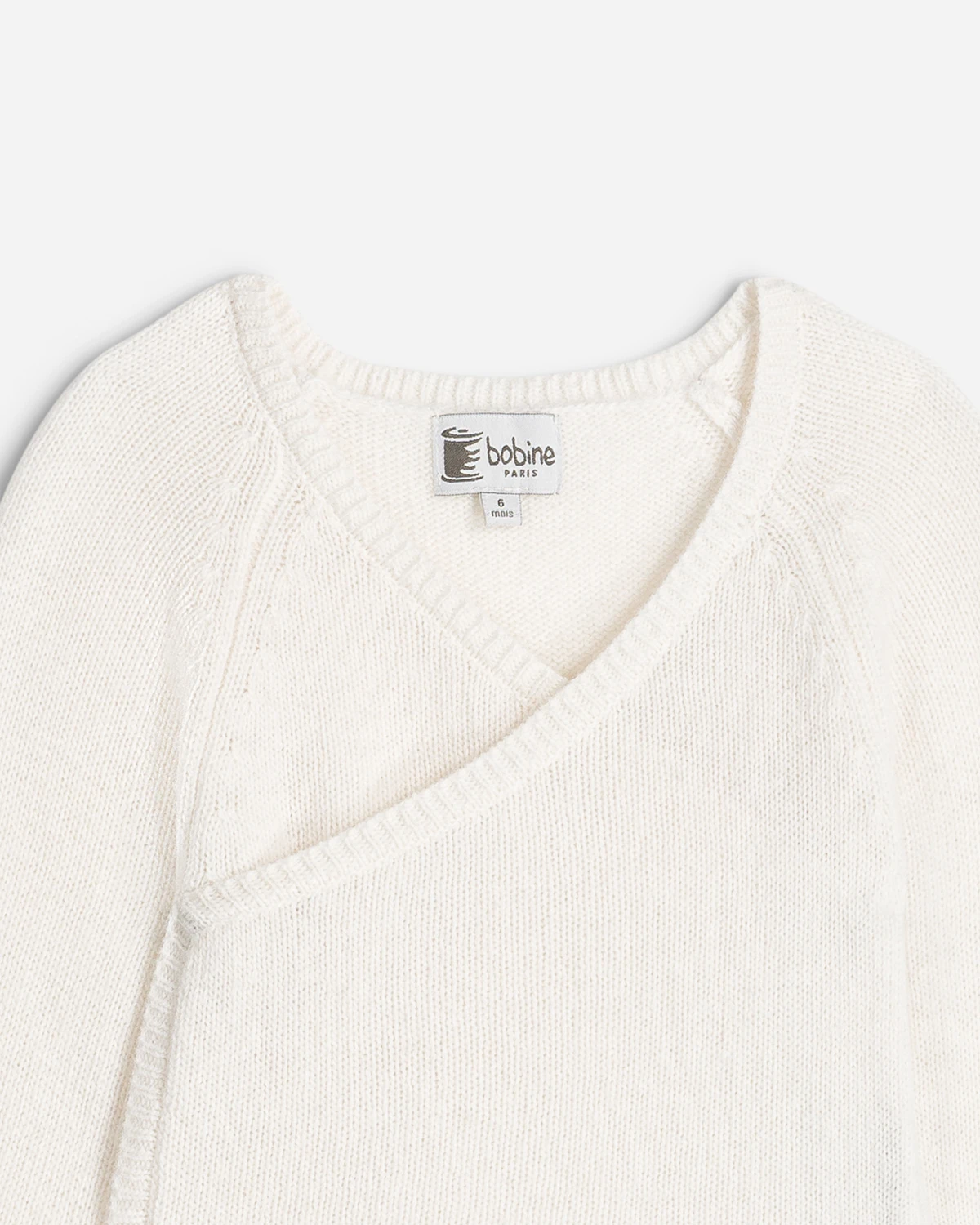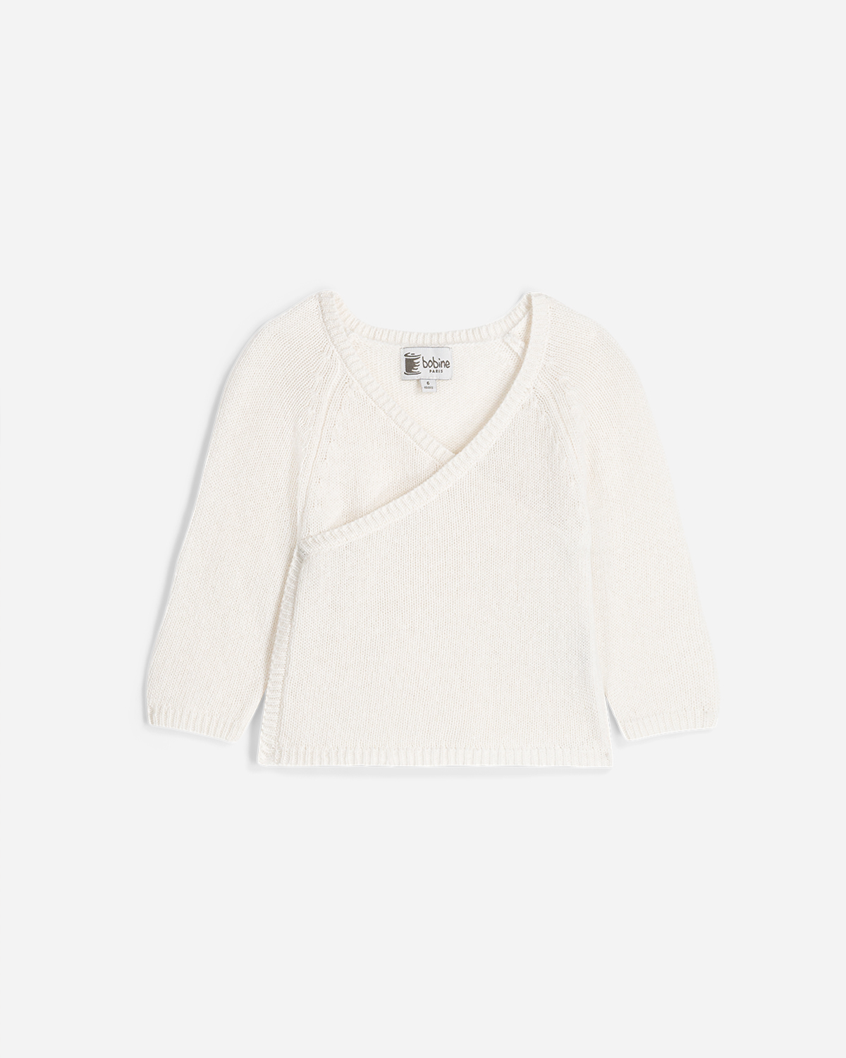 Tout doux et délicat, ce cardigan cache-cœur Bobine Paris en laine et cachemire enveloppe bébé de chaleur et de confort. Son coloris écru et sa coupe raffinée en font une pièce idéale dès la naissance.