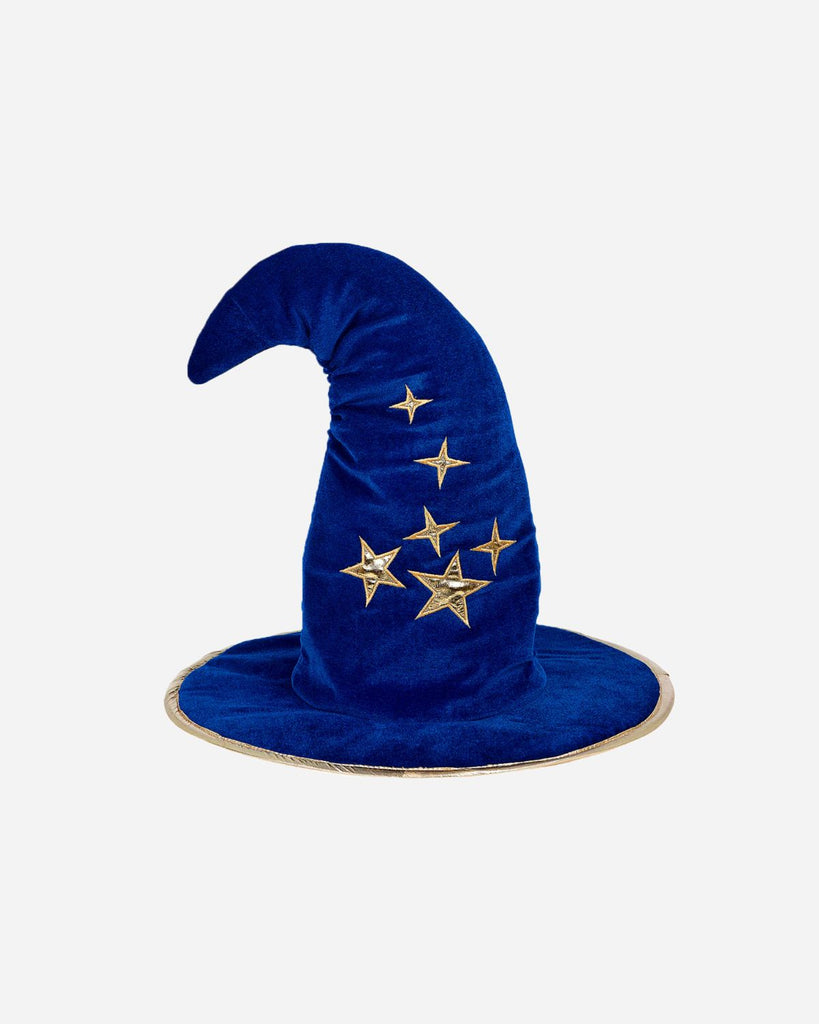 Le chapeau de magicien Wilfried, en velours bleu orné d'étoiles dorées, est l'accessoire parfait pour compléter un déguisement de magicien digne de ce nom! Qu'attendez-vous pour faire naître l'émerveillement partout où votre enfant ira ?