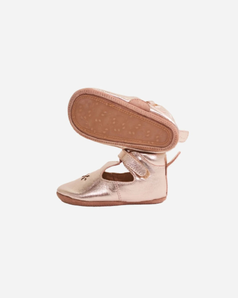 Craquez pour nos adorables chaussons en cuir dorés. Conçus avec un cuir doré raffiné et tendance, ces chaussons ajoutent une touche de glamour à la garde-robe de votre tout-petit. Leur design bien couvrant sur le dessus du pied et les scratchs à la cheville offrent un ajustement parfait et sécurisé, tandis que leur facilité d'enfilage les rend pratiques pour les parents pressés. Confortables et offrant une liberté de mouvement, ces chaussons sont un incontournable pour accompagner bébé dans ses premiers pas avec style.