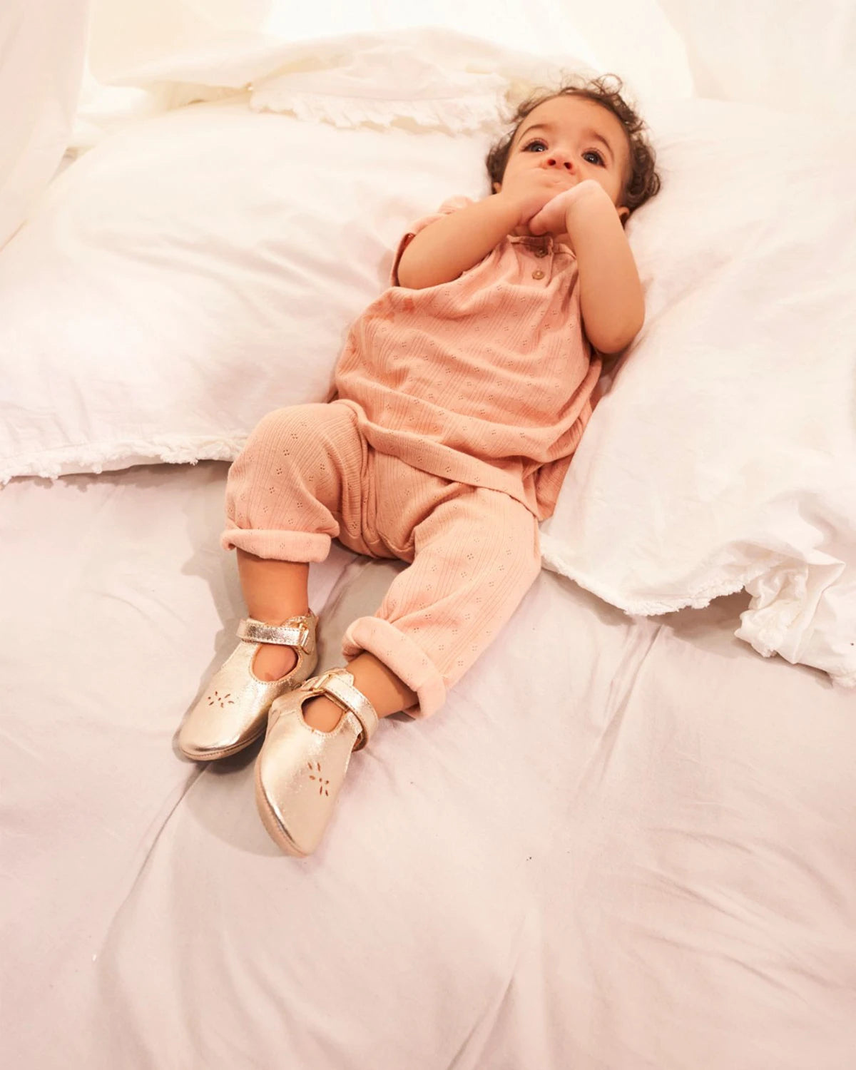 Chaussons en cuir dorés taille 24-25