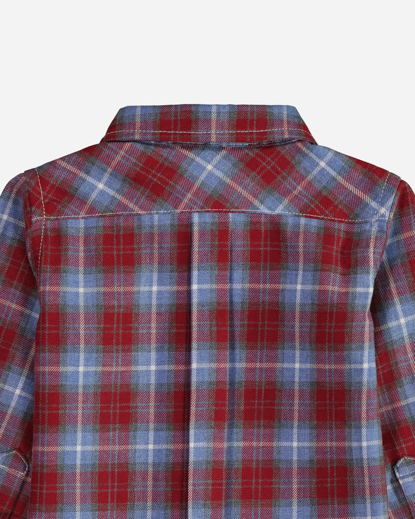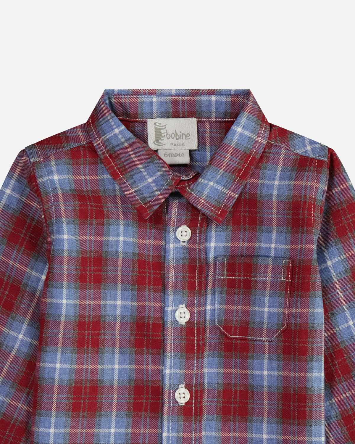 Apportez une note de vivacité aux tenues de votre bébé avec notre chemise garçon à carreaux bleu et rouge. Mariant style et confort, cette chemise rehausse la garde-robe de votre petit avec une élégance casual. Sa petite poche à l’avant ajoute une touche moderne, tandis que sa coupe raffinée et fonctionnelle la rend idéale pour les événements spéciaux comme pour les moments plus détendus. Votre bébé bénéficiera ainsi d'une allure à la fois sophistiquée et agréable.