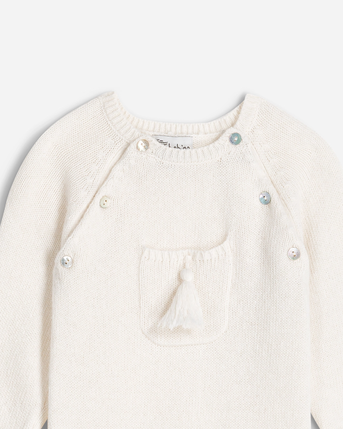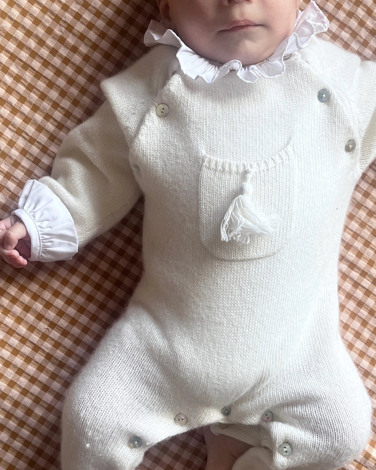 Découvrez le confort et la chaleur de notre combinaison bébé en laine et cachemire écru. Elle combine la douceur du cachemire à la chaleur naturelle de la laine pour créer un cocon de bien-être. Arborant une teinte écru élégante, cette combinaison ajoute une touche de douceur intemporelle à la garde-robe de votre tout-petit.