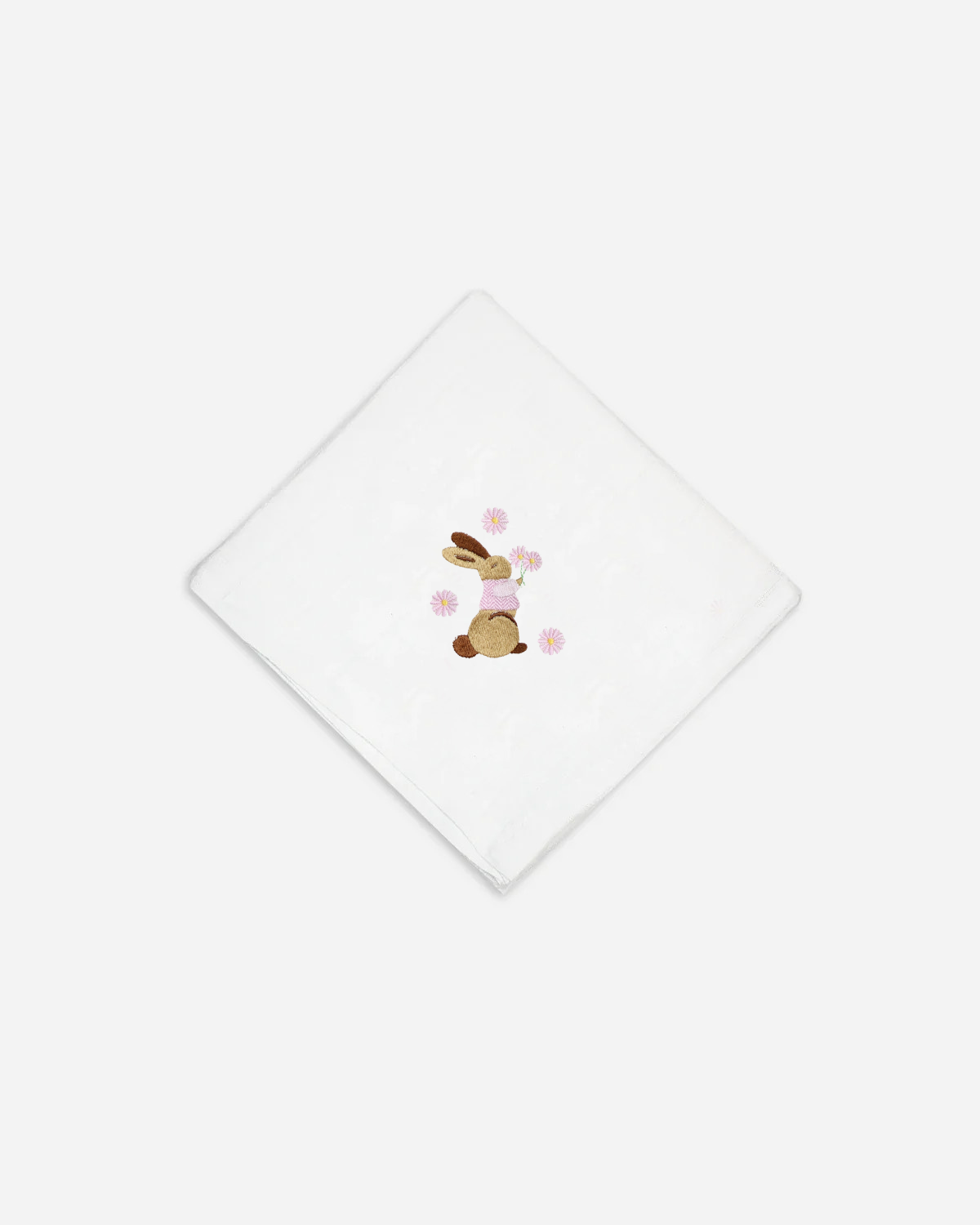 Ce lange en coton brodé est un incontournable pour le confort de bébé. Idéal pour l’accompagner tout au long de la journée, il peut être utilisé comme couverture légère, doudou apaisant ou encore protection d’épaule après le biberon. Son joli motif brodé représentant un lapin rose apporte une touche tendre et festive à cet accessoire du quotidien.