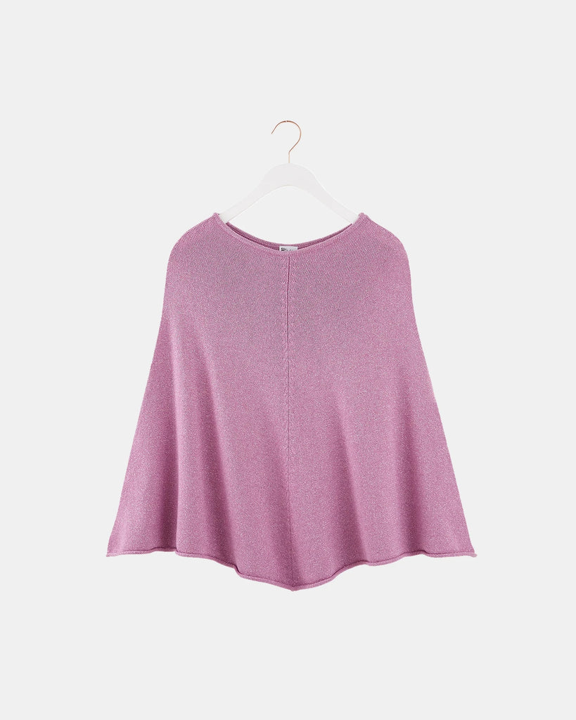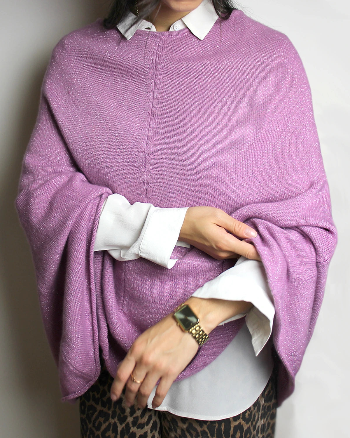 Poncho femme lilas pailleté en laine et cachemire - Disponible en T1 uniquement
