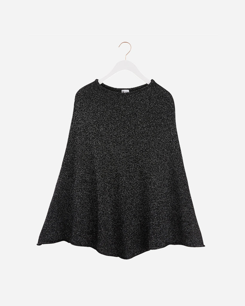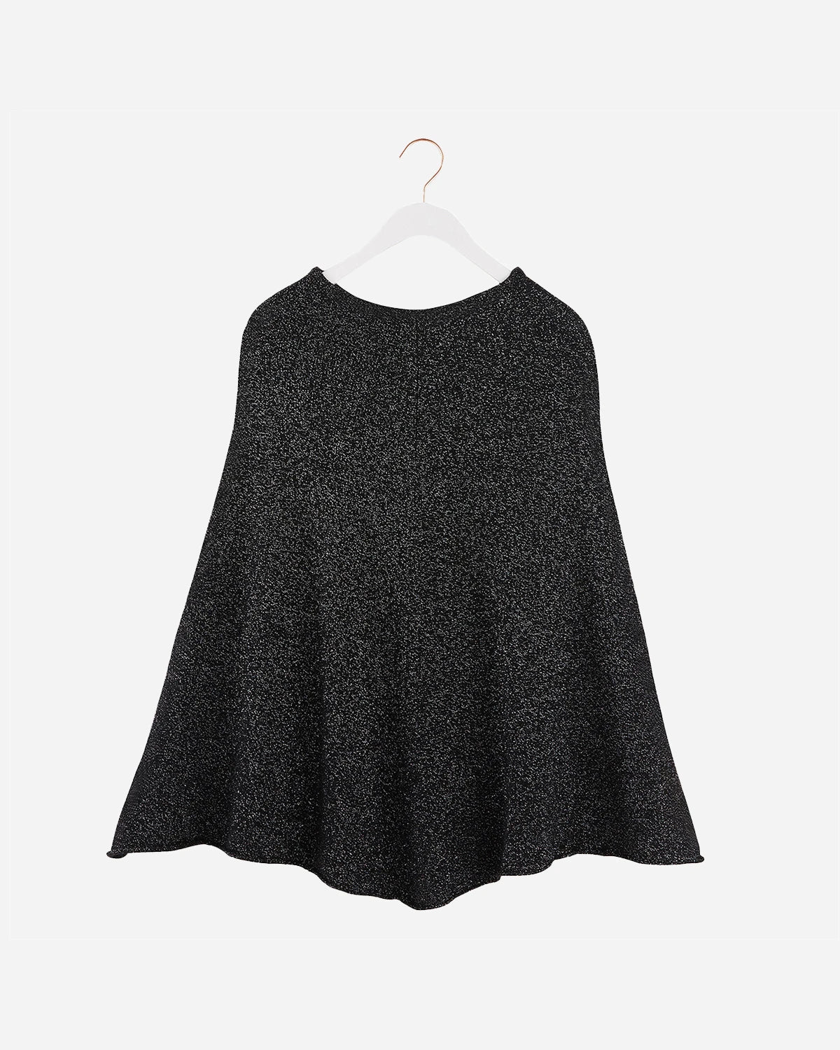 Poncho femme noir pailleté argenté en laine et cachemire - Disponible en Taille 1 uniquement