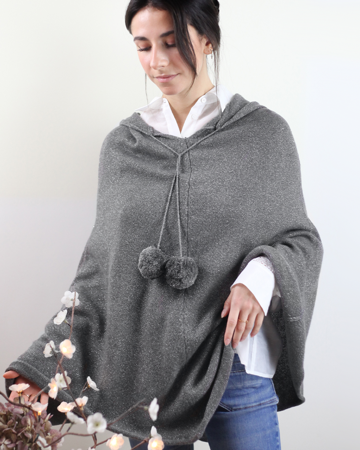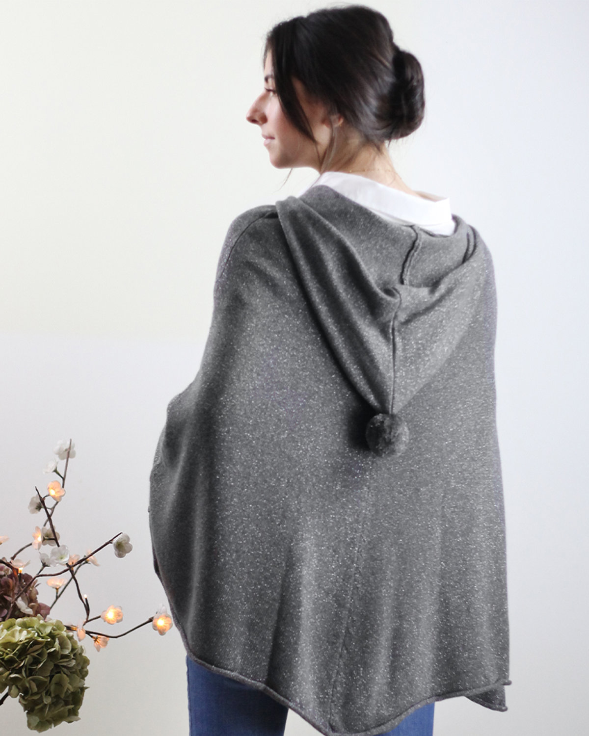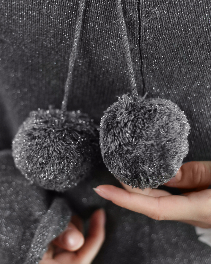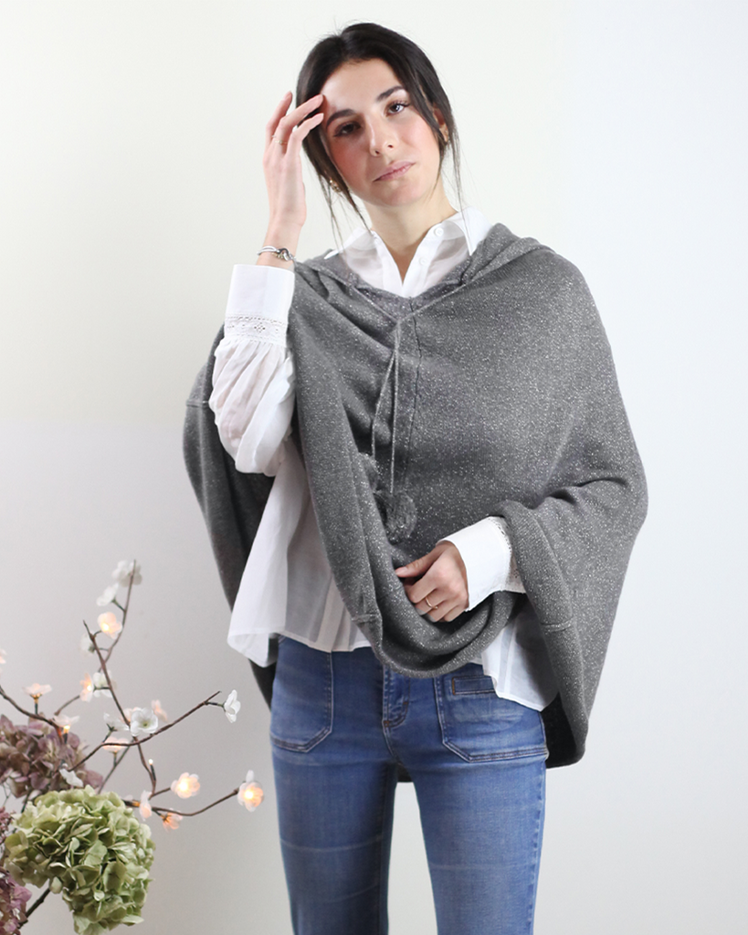Le poncho à capuche est idéal pour vous envelopper dans un cocon chaud pour l'hiver. Il est doté de fils pailletés pour apporté un joli détail à l'ensemble.