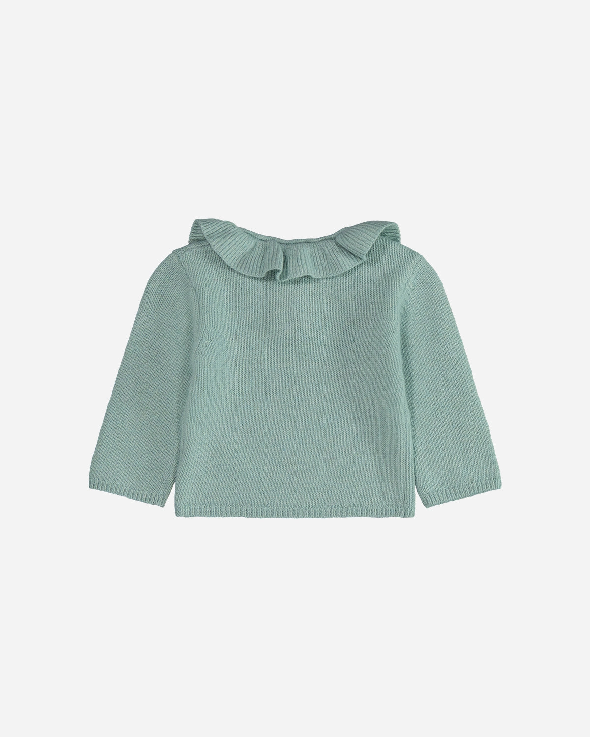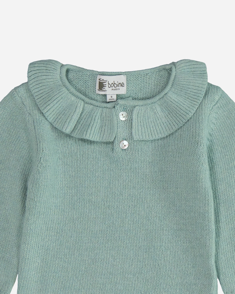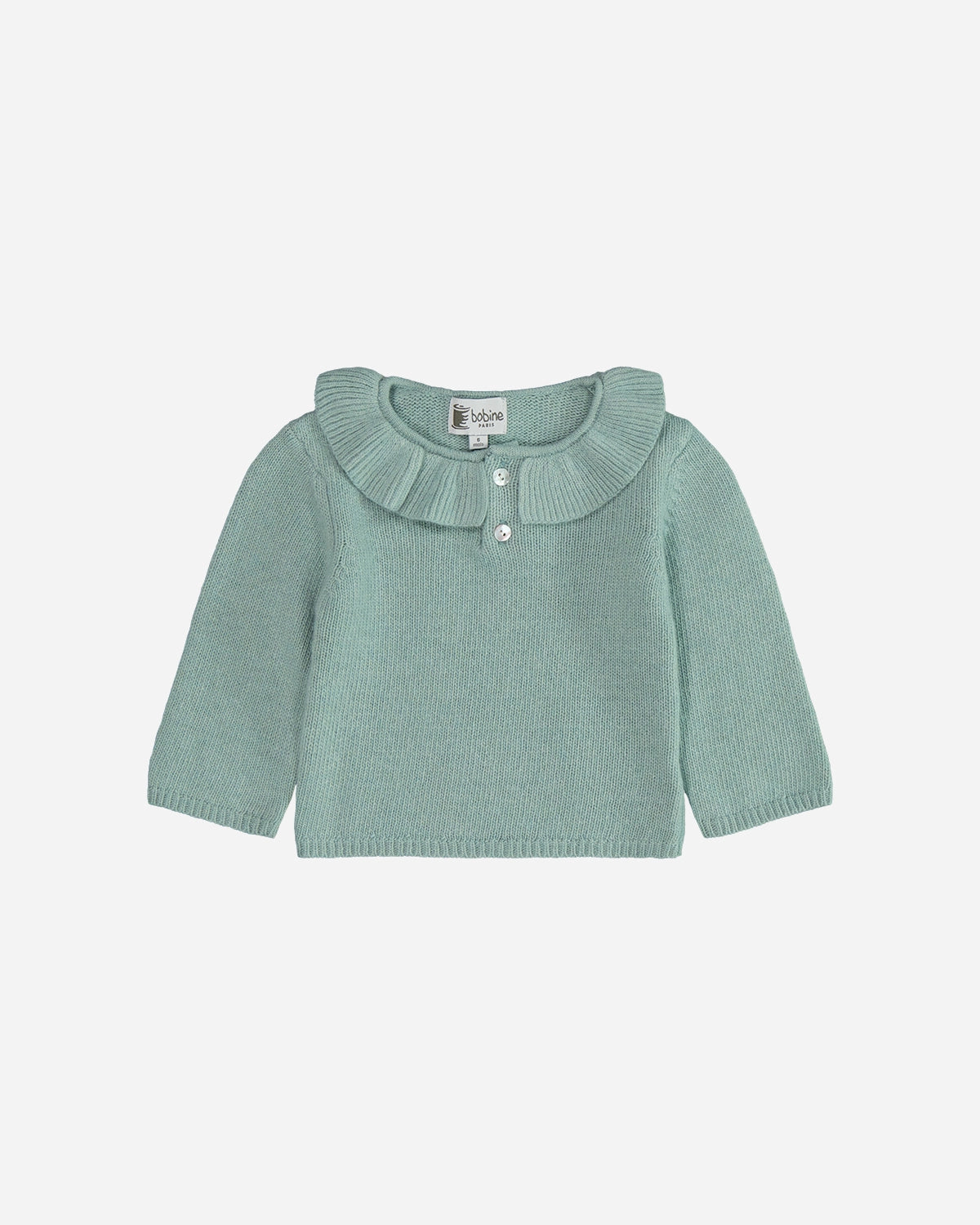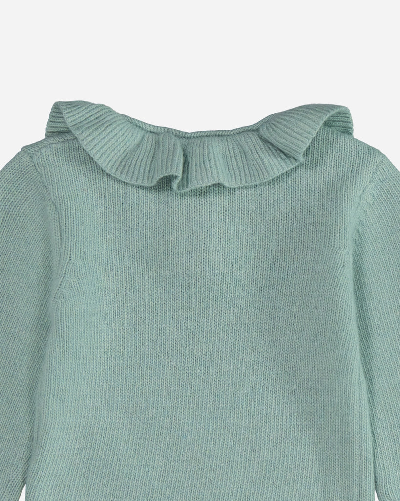 Pull bébé en laine et cachemire col volanté vert d'eau