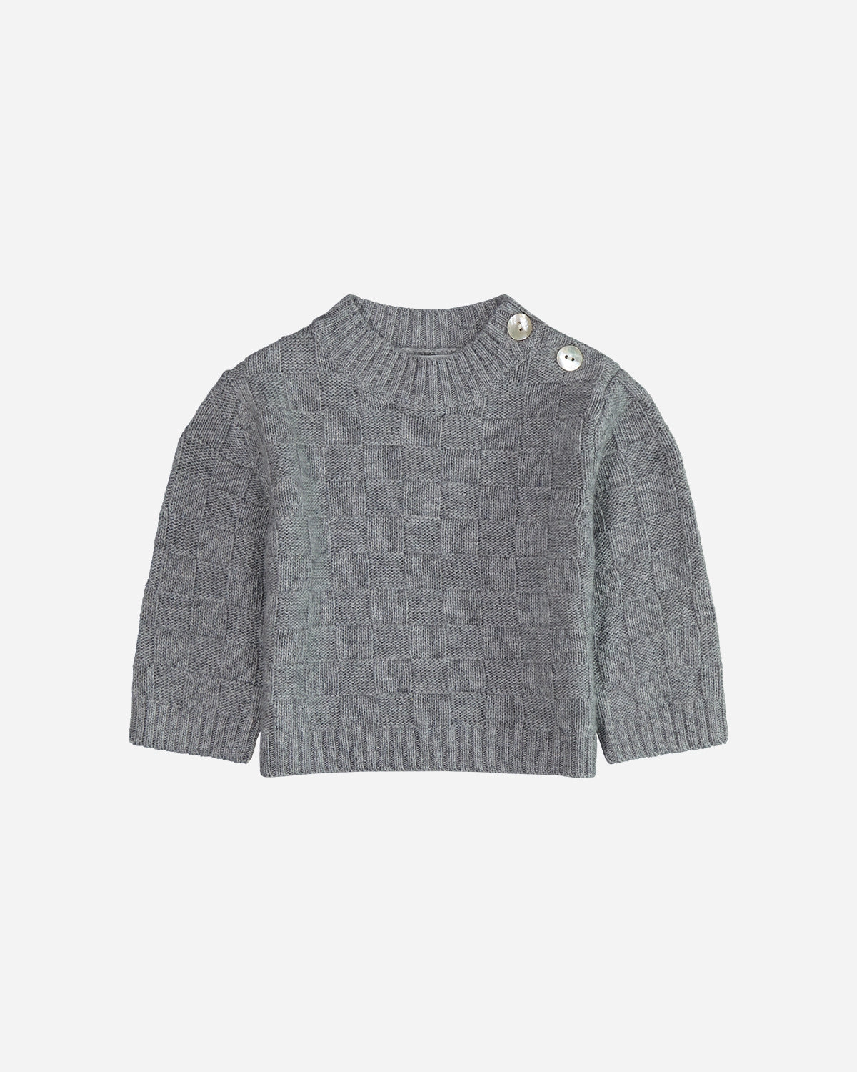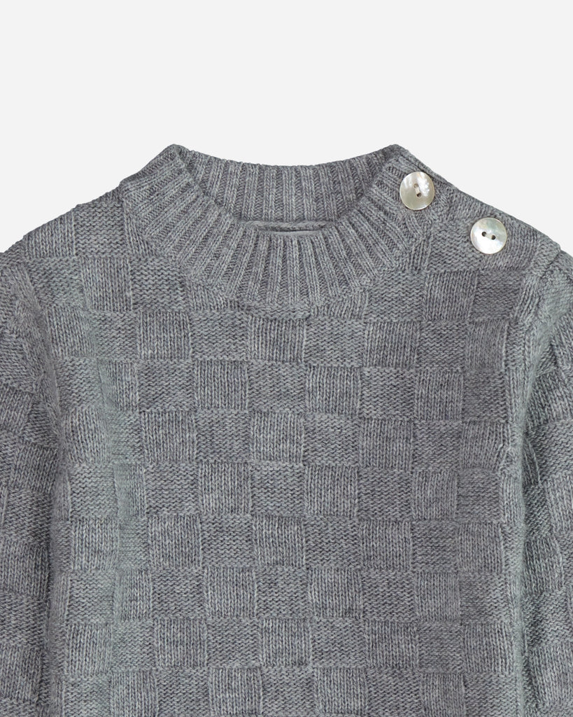 Parfaitement adapté aux journées fraîches, ce pull est idéal à la maison comme en promenade. Que votre bébé se prélasse dans son berceau ou parte à la conquête de son environnement, il restera bien au chaud, enveloppé dans la douceur et le confort de ce pull en laine et cachemire gris.