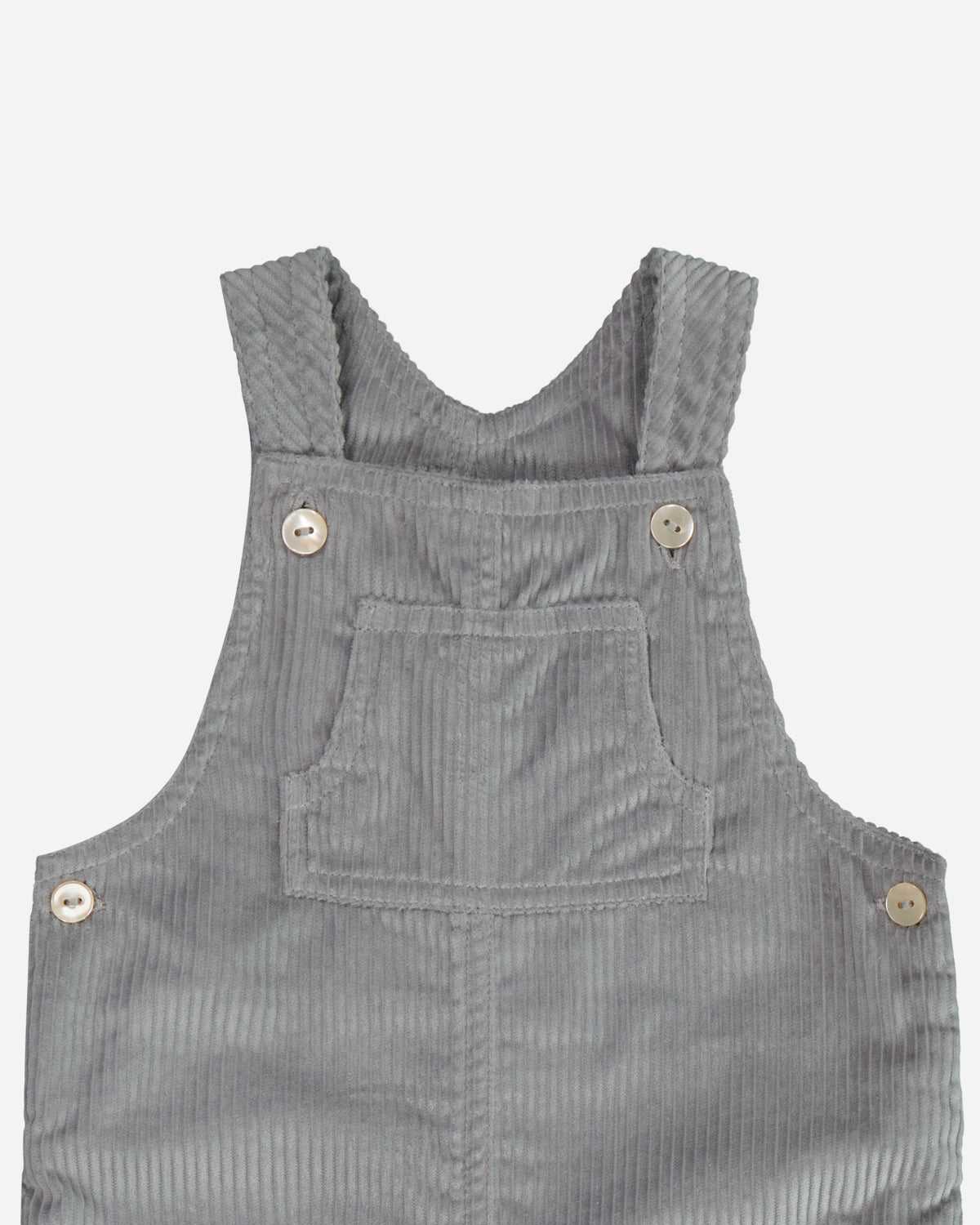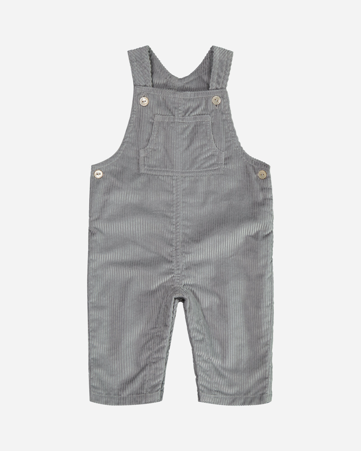Laissez-vous séduire par la salopette bebe Octave longue en velours côtelé gris, un incontournable de la saison. Équipée de boutons nacrés à la taille et aux bretelles, elle rend l'habillage facile tout en apportant un style remarquable.